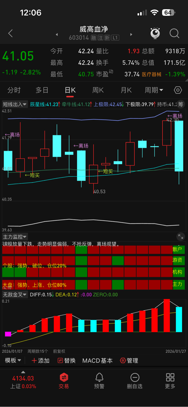 $威高血净(SH603014)$ 指标不太好看,下午看看不行就出一半