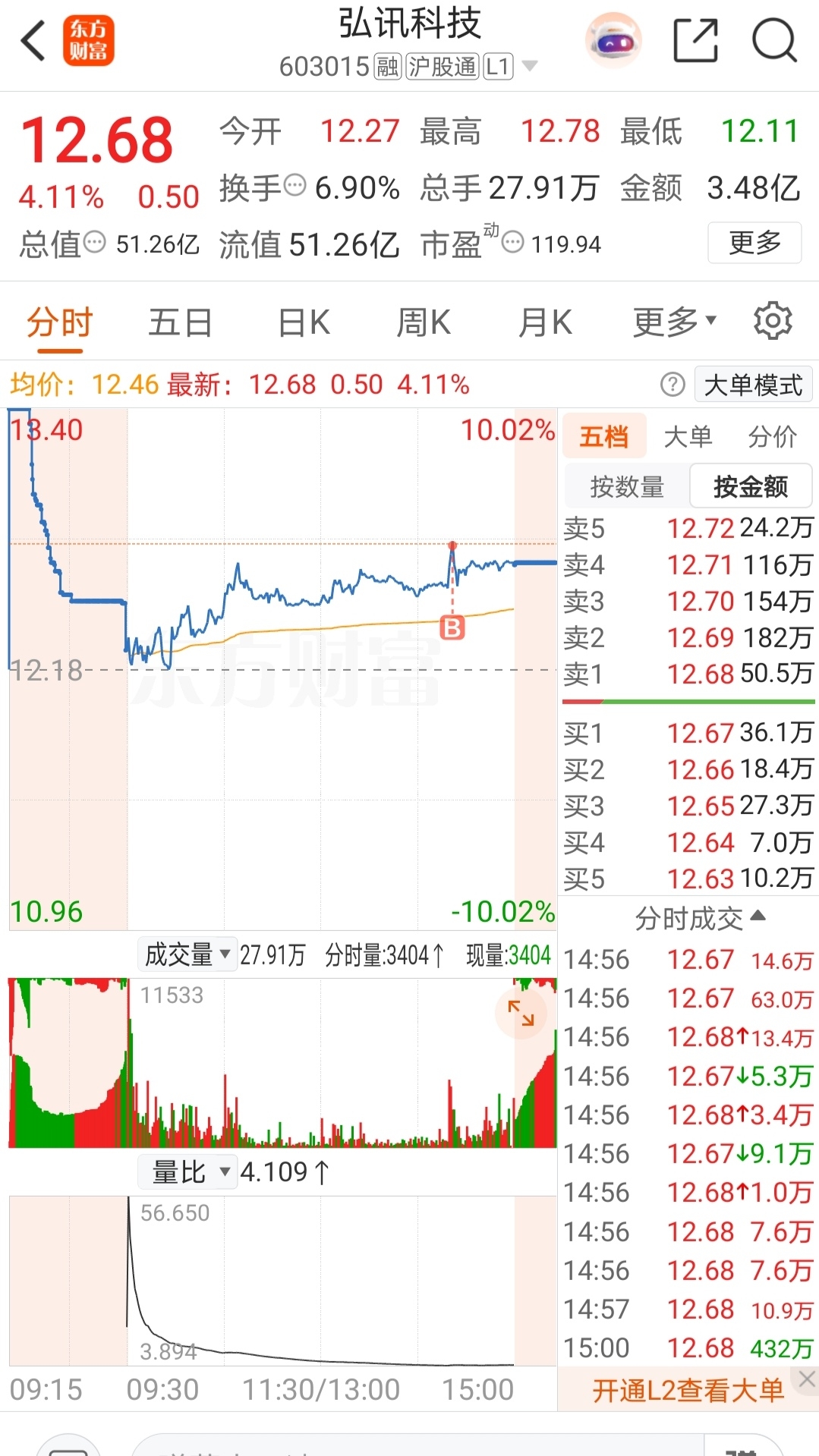 $弘讯科技(SH603015)$ 兄弟们今天看着要板,只能怪我啊