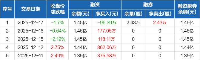 弘讯科技:融资净偿还96.39万元,融资余额1.45亿元(12-17)