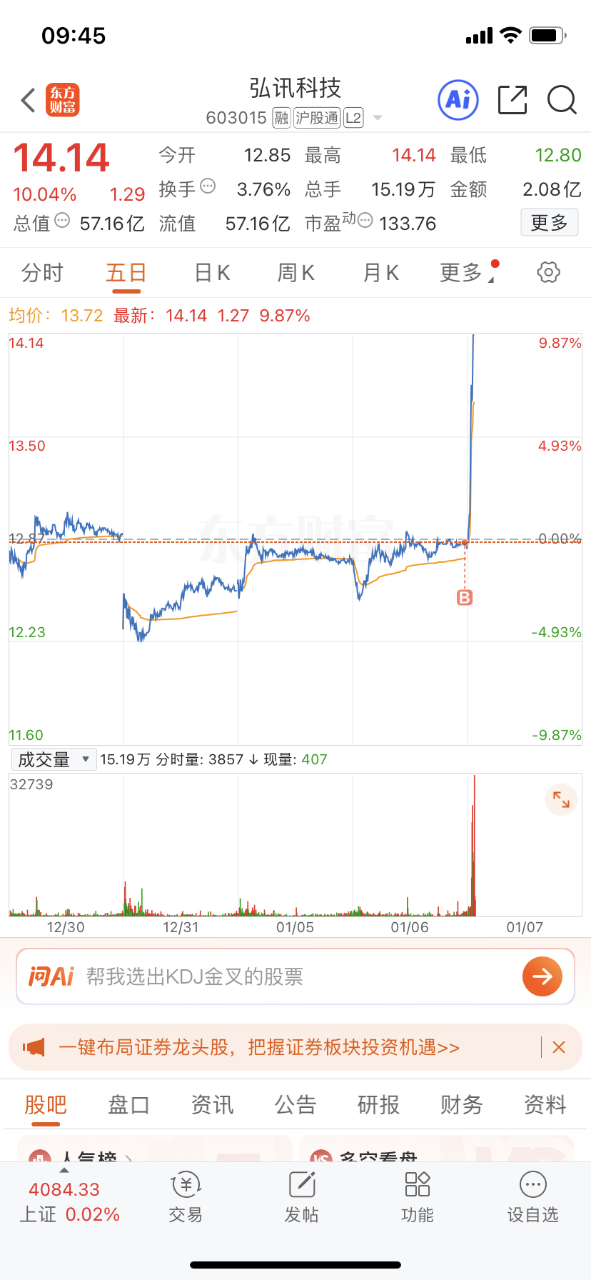 $弘讯科技(SH603015)$ 昨天尾盘进的,感谢主力