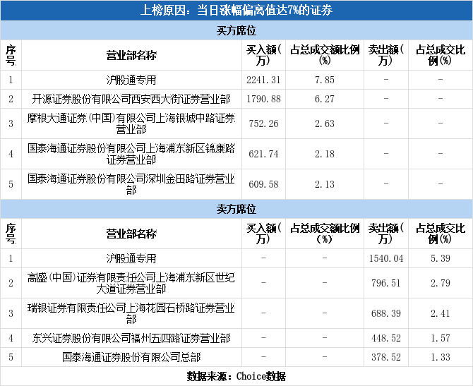 沪股通现身龙虎榜,弘讯科技涨停(01-07)