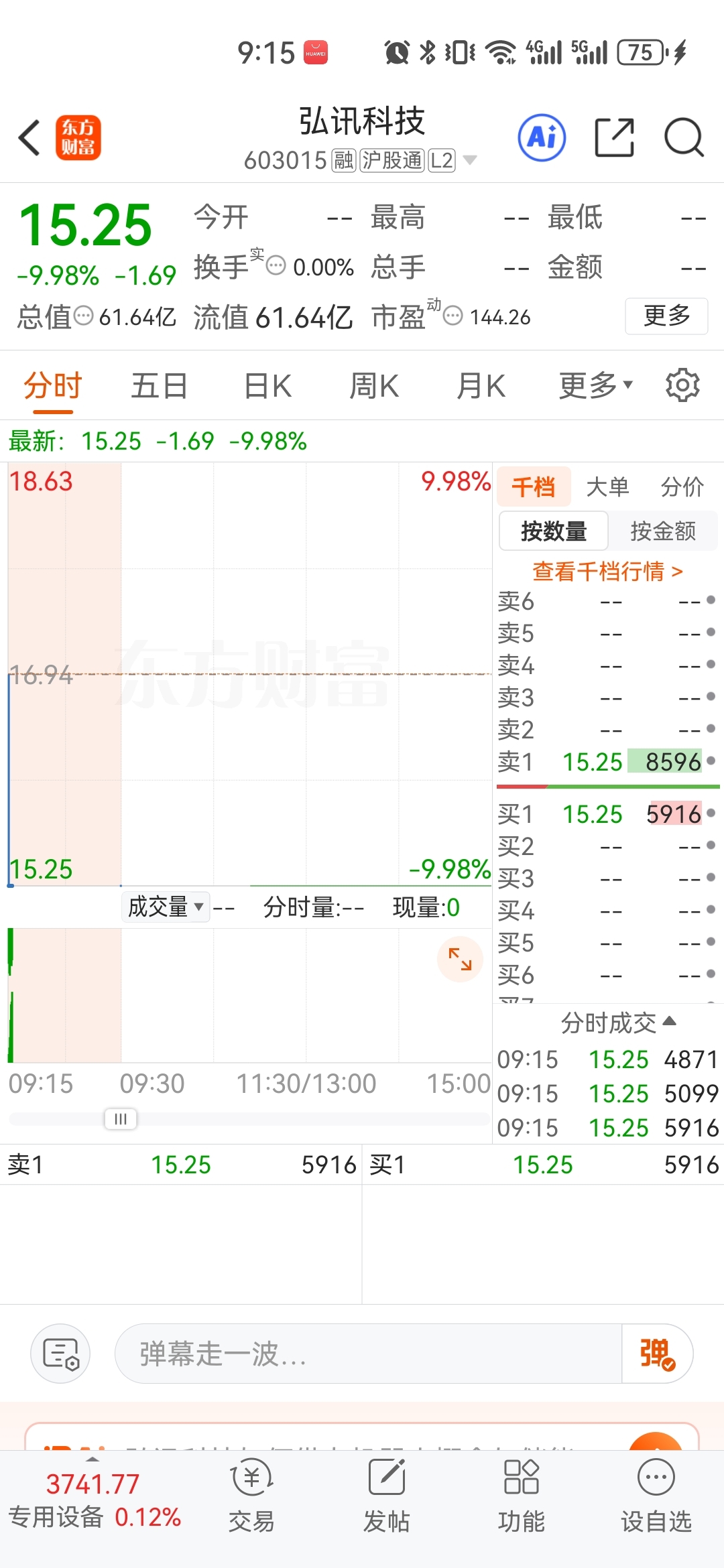 $弘讯科技(SH603015)$ 昨天我说不是跌停开我一人200,你们不相信我?验证了没有。