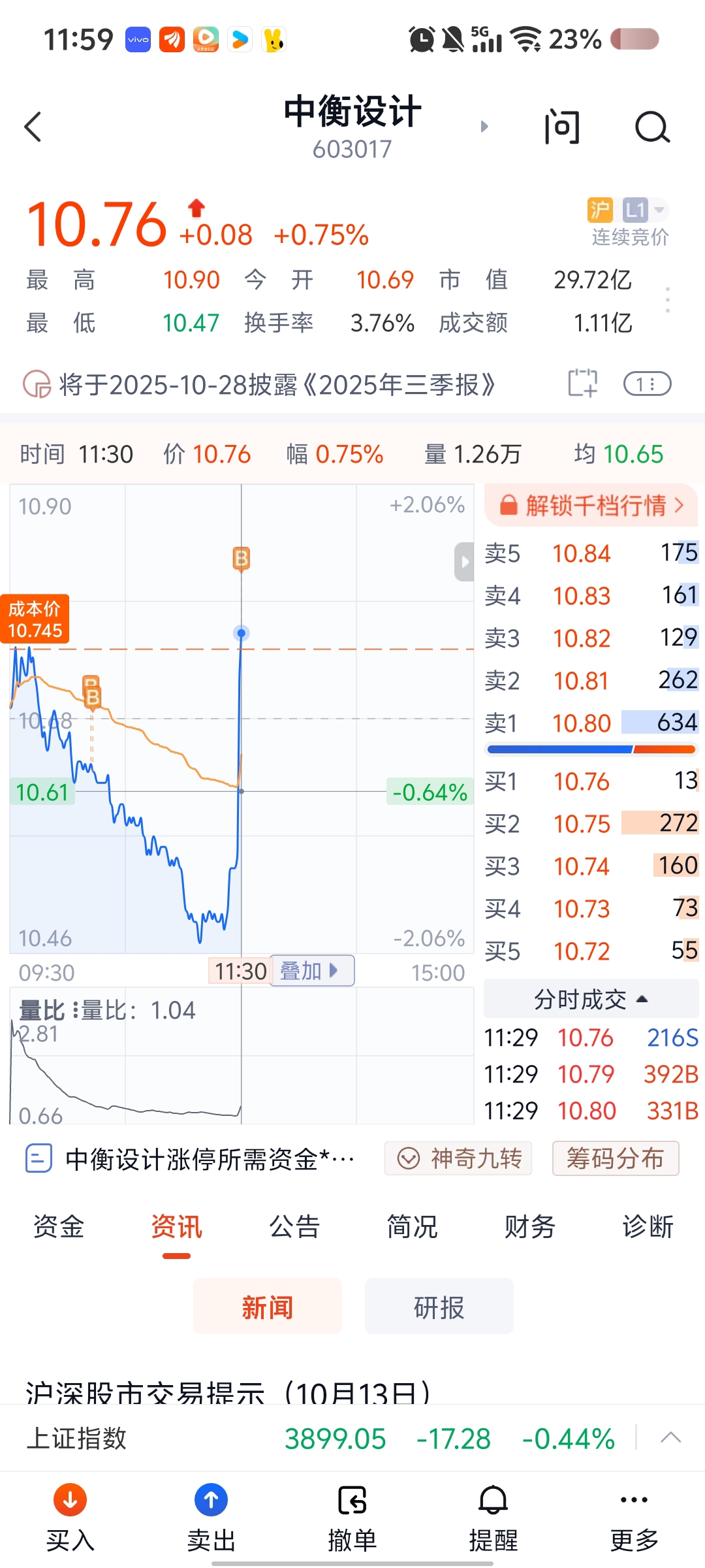 $中衡设计(SH603017)$ 刚才10.85进入的,是不是冲动了