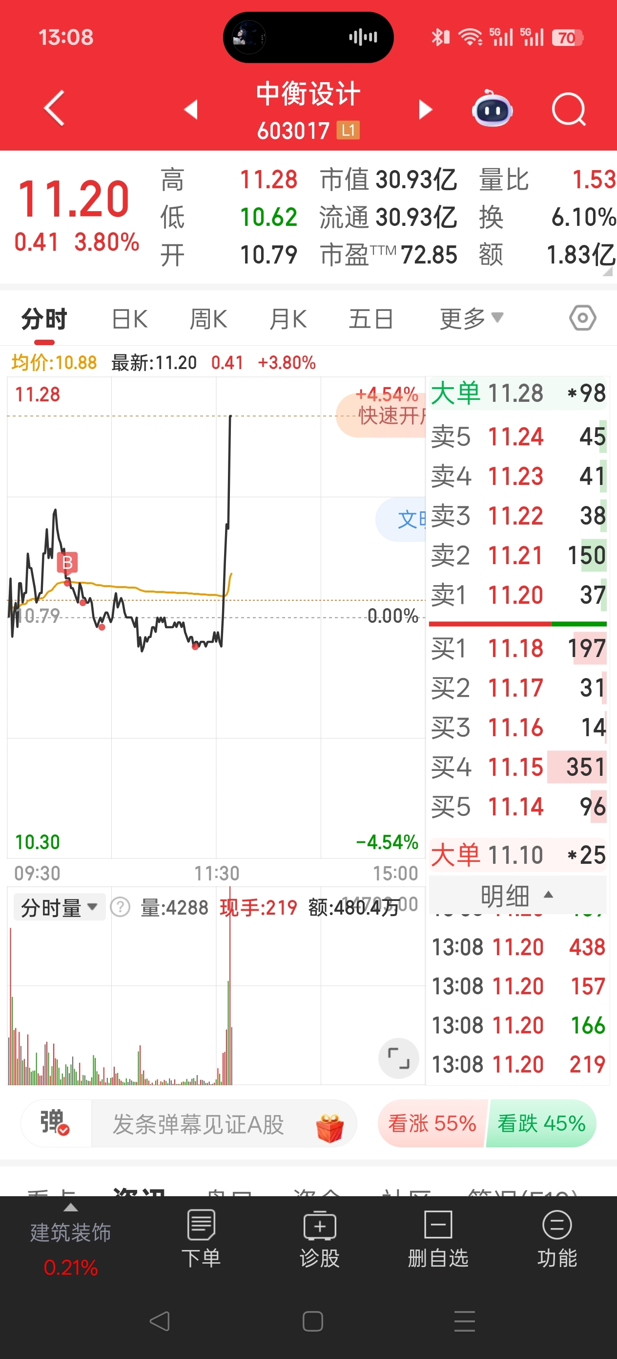 $中衡设计(SH603017)$ 今天抄底了6000股底仓。