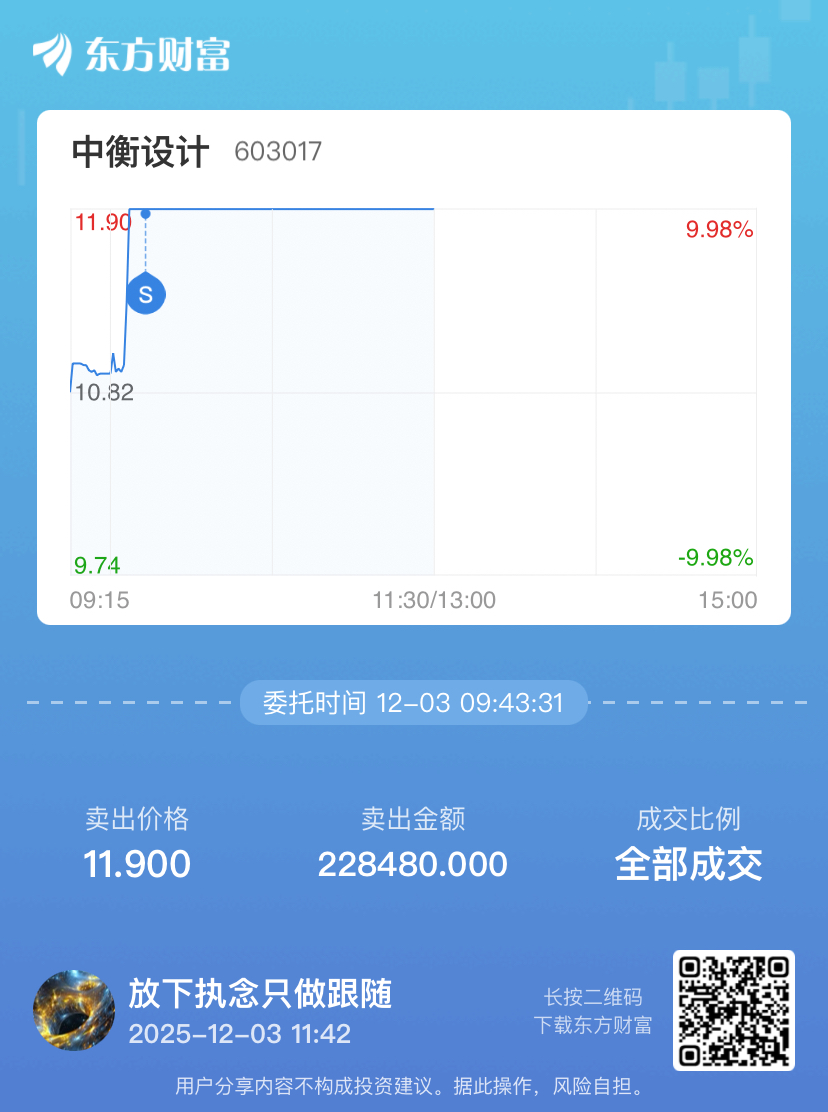 $中衡设计(SH603017)$ 炸板的瞬间吓跑了,估计卖飞