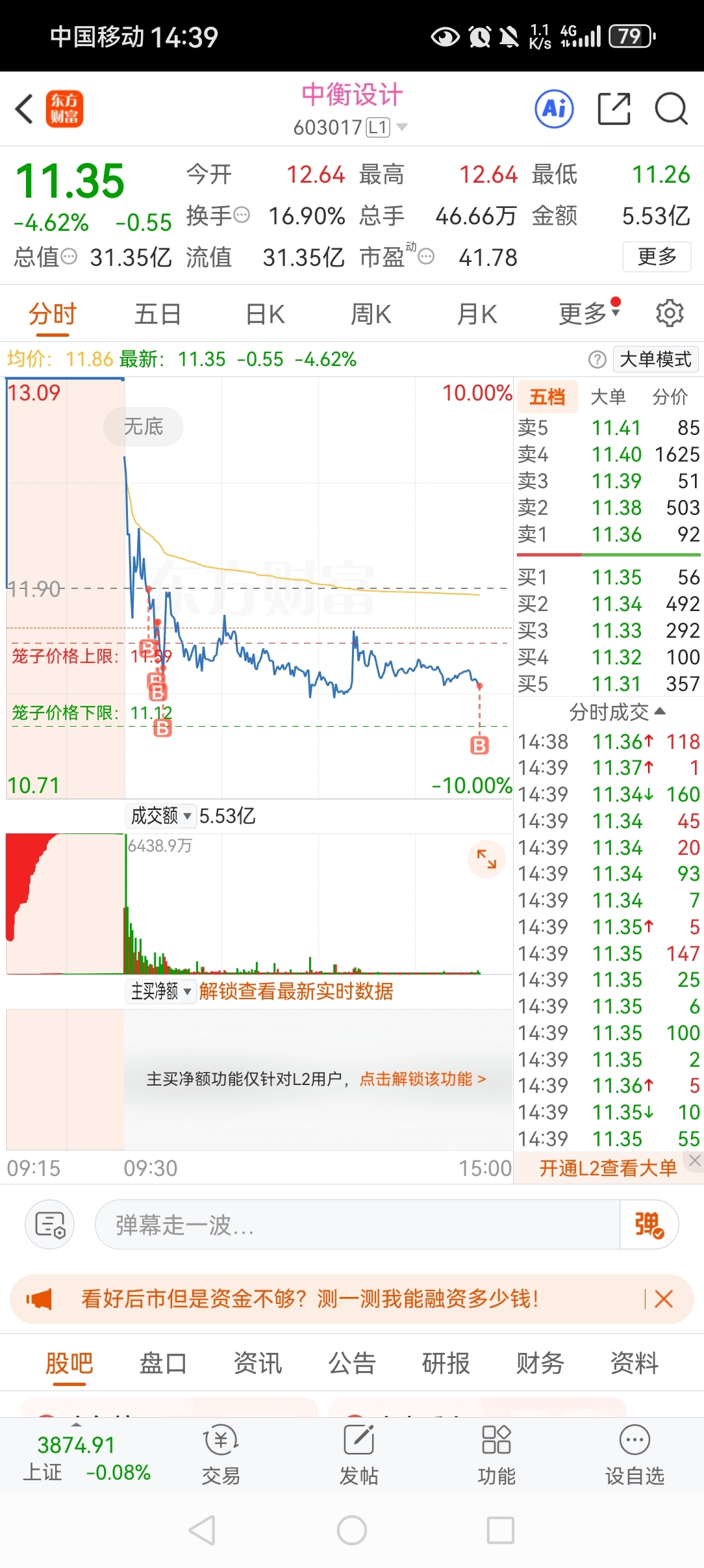 $中衡设计(SH603017)$ 你特喵!!!一大早买的你,被你套牢!!!