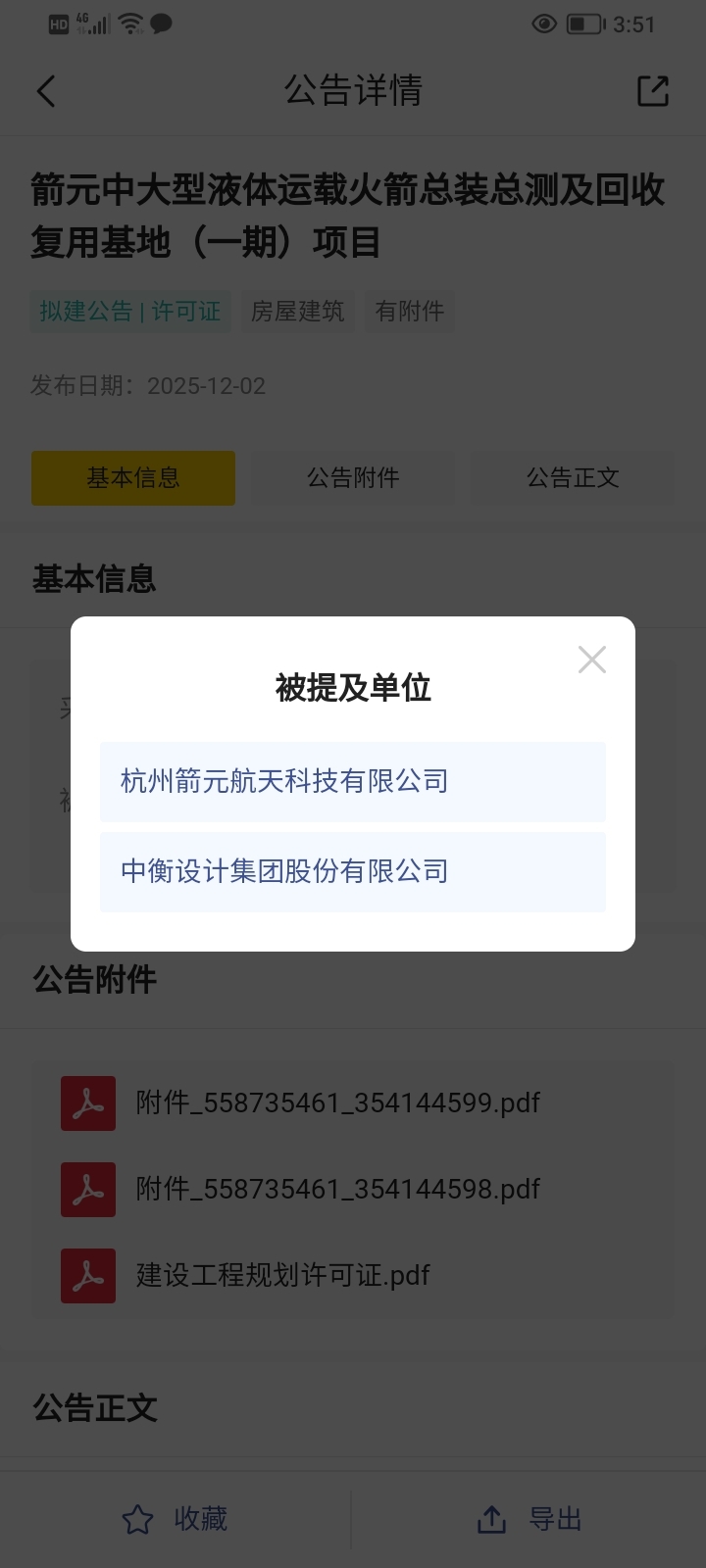 $中衡设计(SH603017)$ 昨晚报道的箭元科技投资52亿的中大型可回收火箭杭州基地还是中衡设计中标。