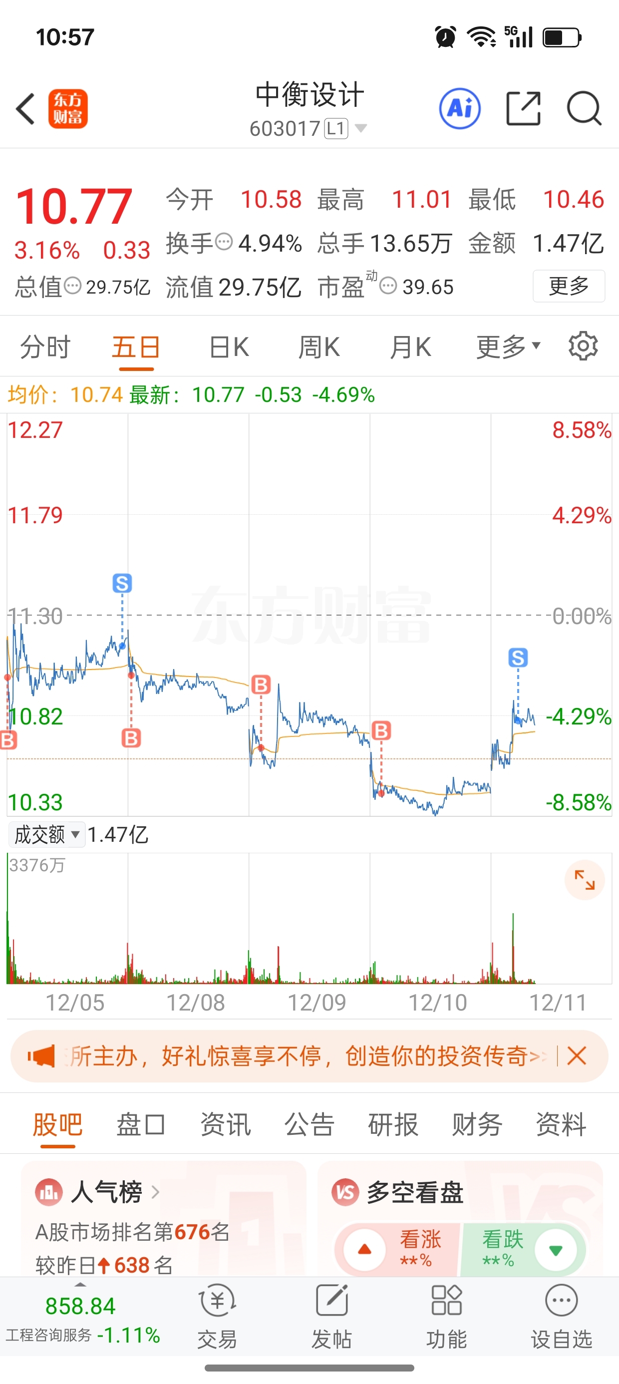 $中衡设计(SH603017)$ 以为今天没啥好看的 上来一看有惊喜 立马t出来被套的