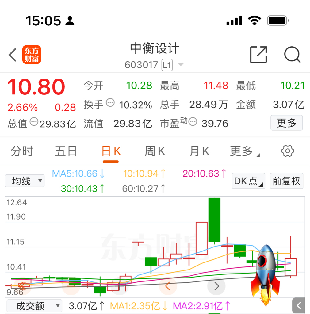 $中衡设计(SH603017)$ $航天动力(SH600343)$ $航天发展(SZ000547)$ 不亏是设计火箭的,k线都长得像火箭,操盘手真专业
