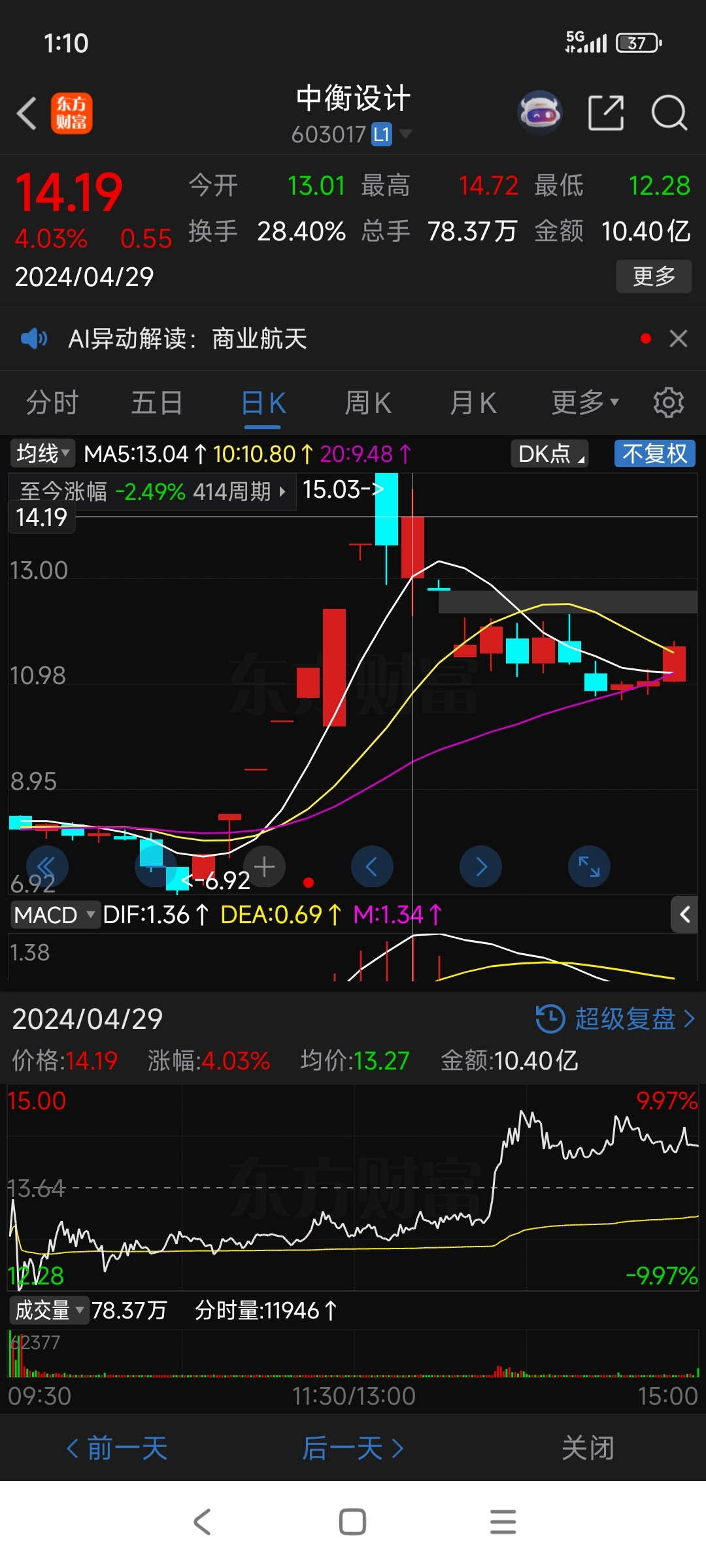 $中衡设计(SH603017)$ 有一字连板基因,突然前高,直达20