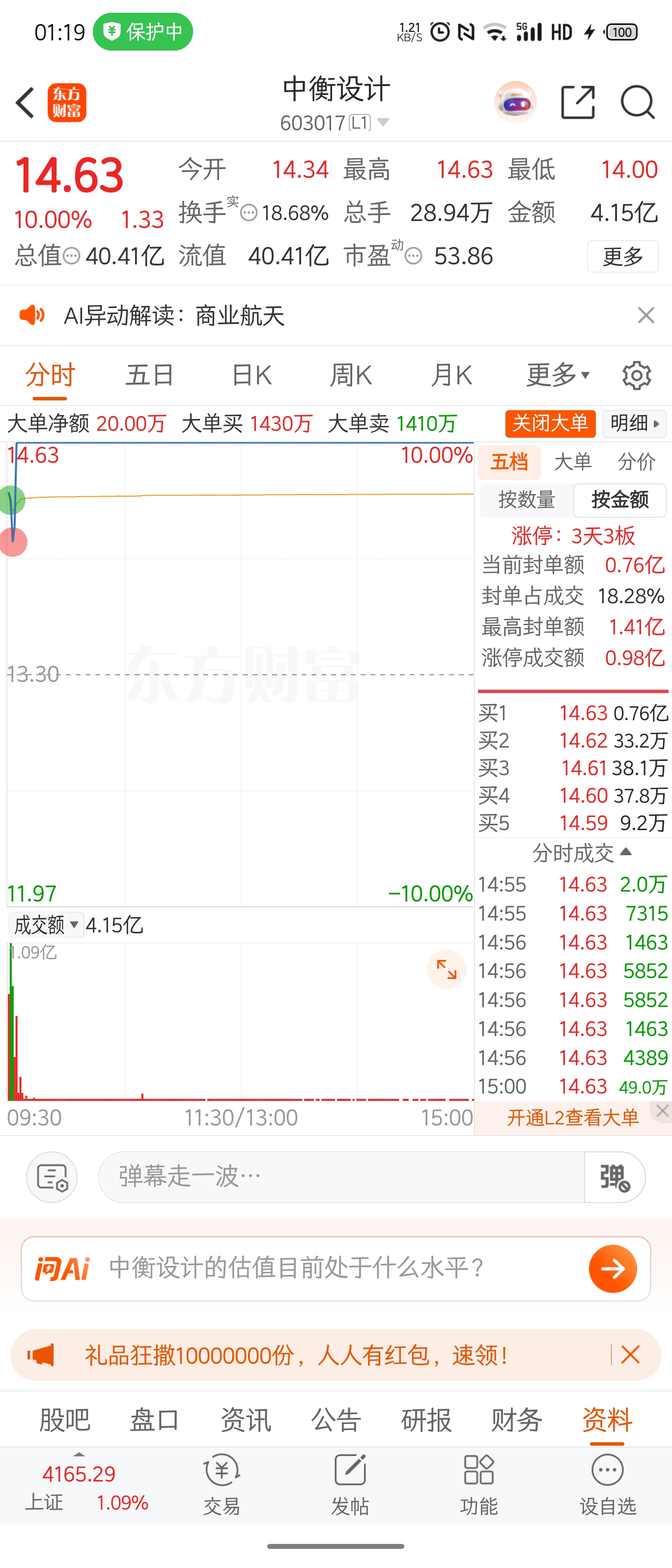 $中衡设计(SH603017)$ 封单量7600万。今天出现分歧。