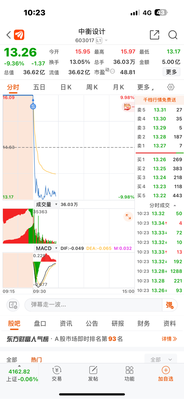 $中衡设计(SH603017)$ 成功出逃