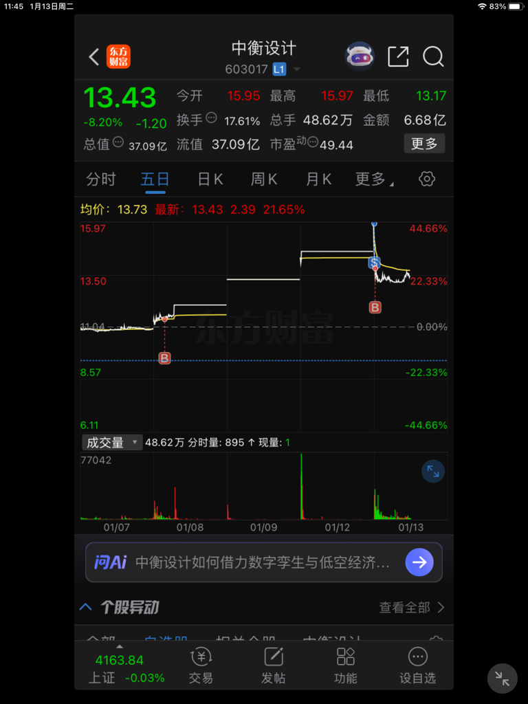 $中衡设计(SH603017)$ -5有接回来了