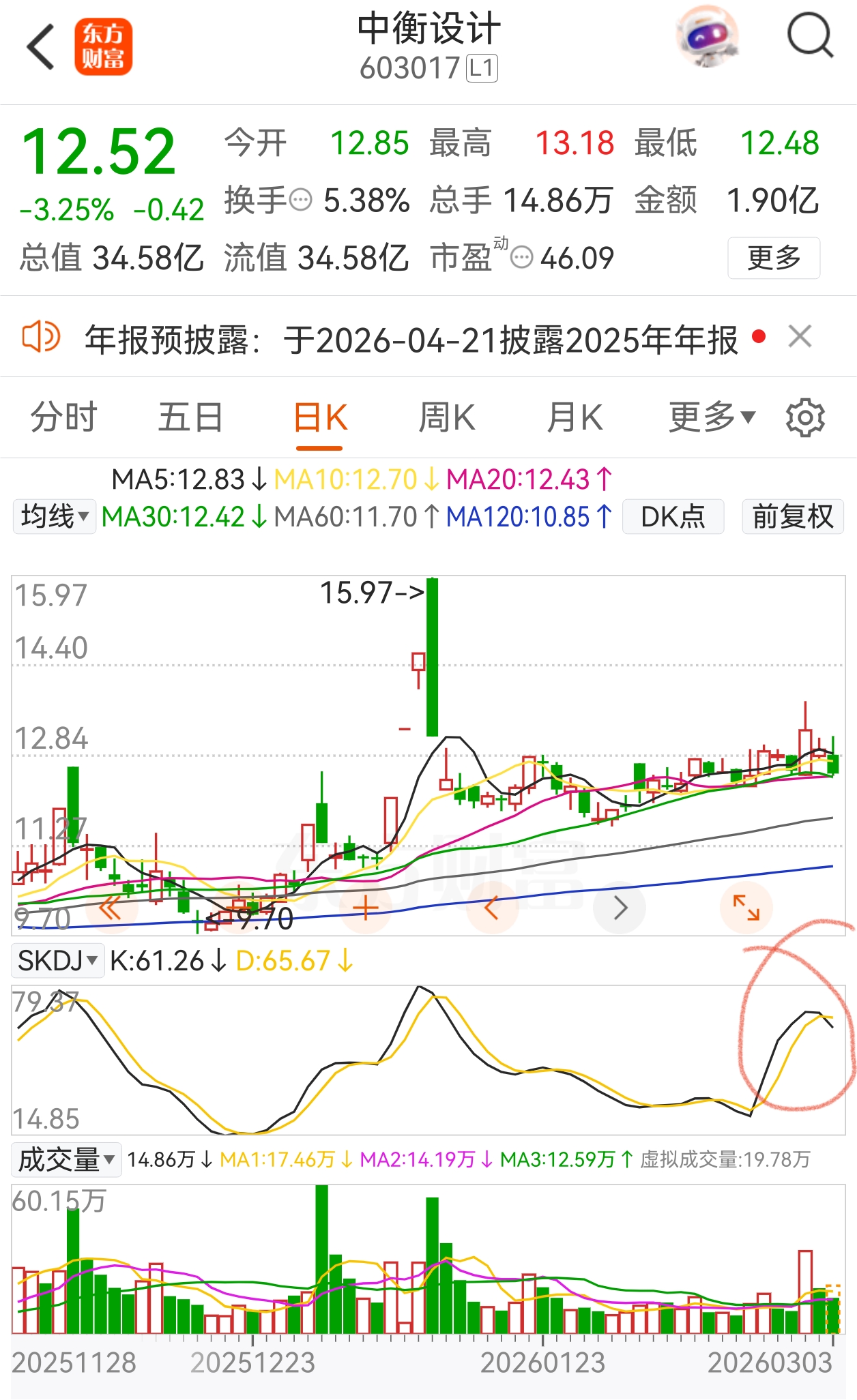 $中衡设计(SH603017)$ 死叉?