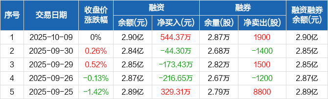 华设集团:融资净买入544.37万元,融资余额2.9亿元(10-09)