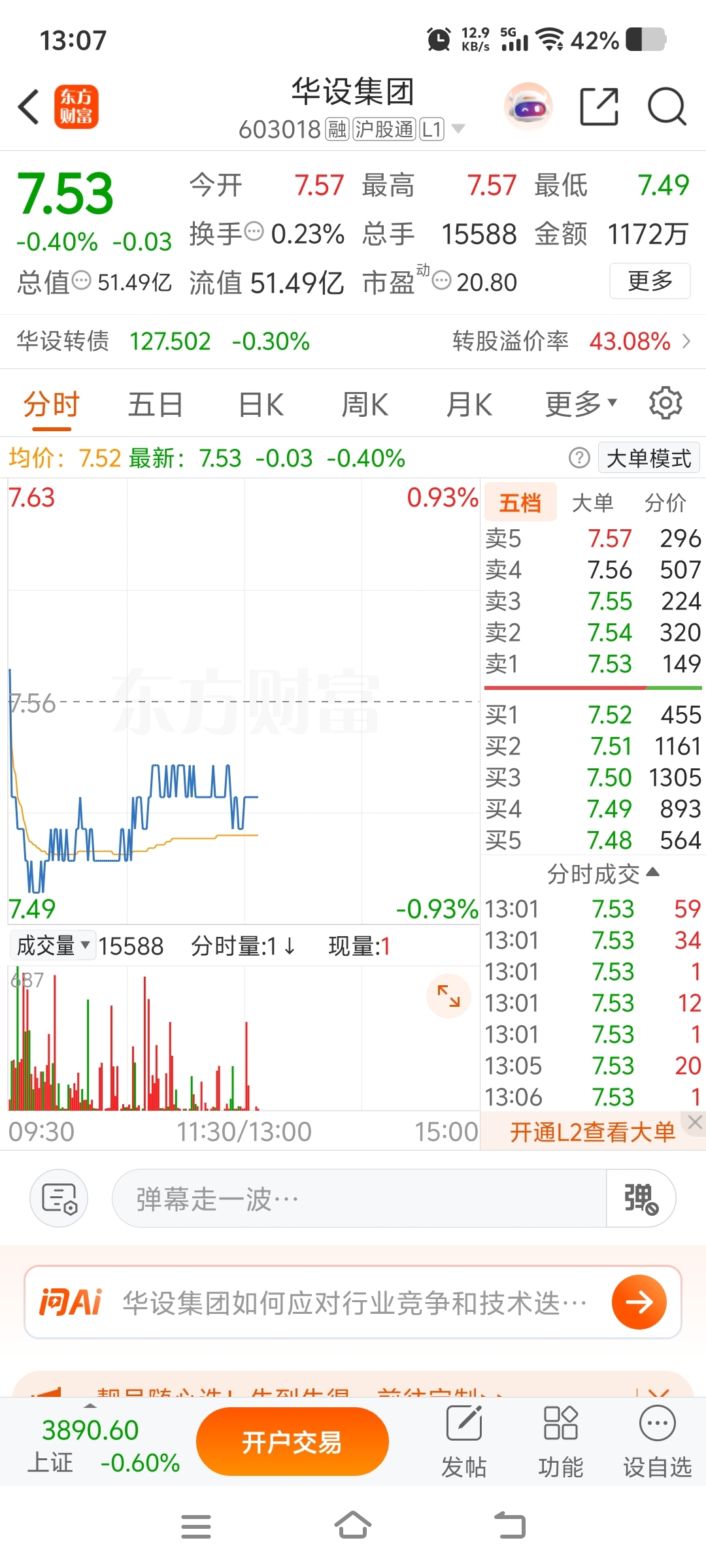 $华设集团(SH603018)$ 成仙姑了,居然四分钟没有任何成交,买的不愿买,卖的不愿卖,有得熬啊!