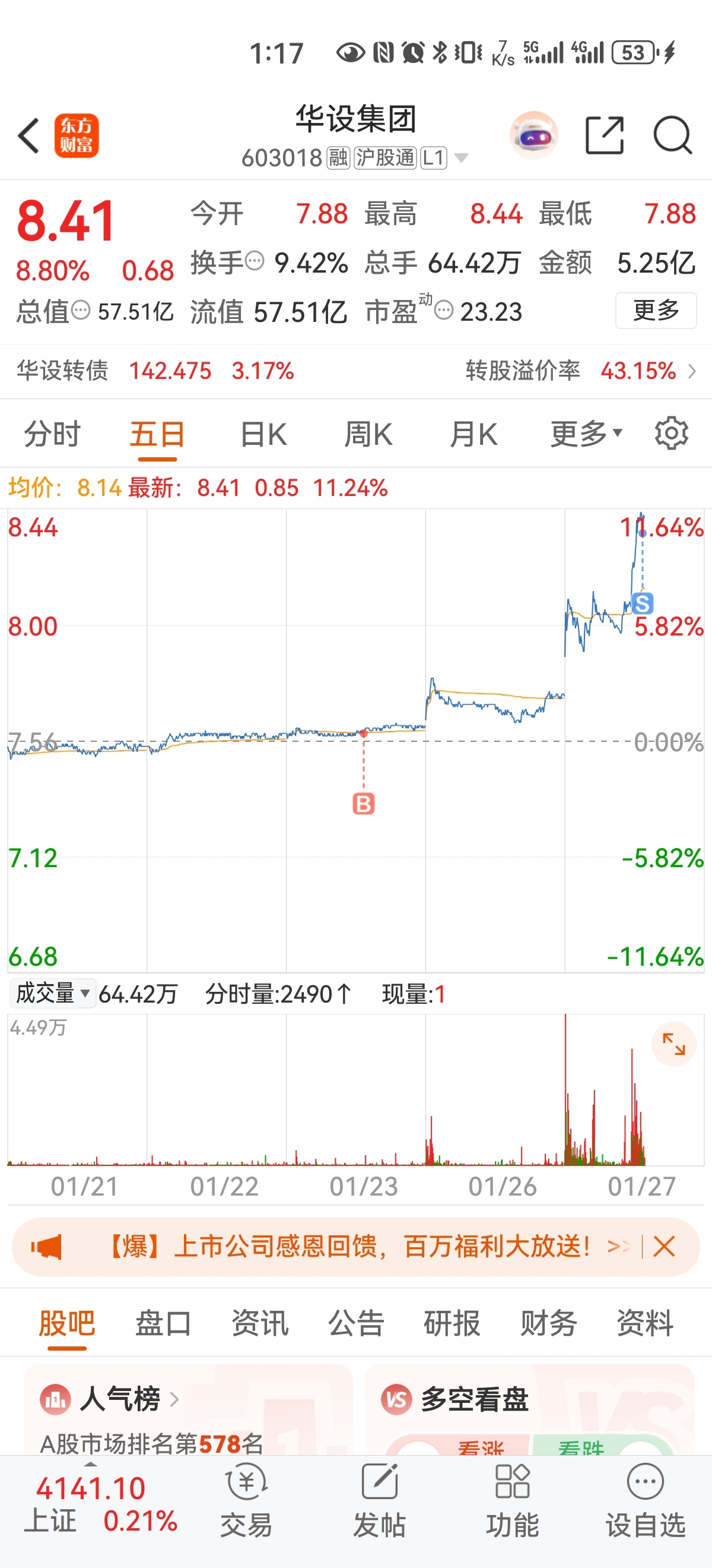 $华设集团(SH603018)$ 条件单触发了