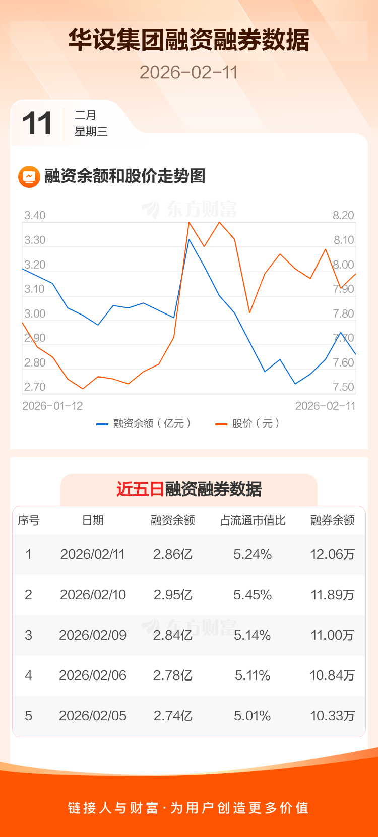 交易所最新数据显示,华设集团于2026年2月11日获融资买入738.33万元,融资偿还1667.54万元,当日融资净偿还929.21万元。目前,该股融资余额2.86亿,占流通市值比例为5.24%。