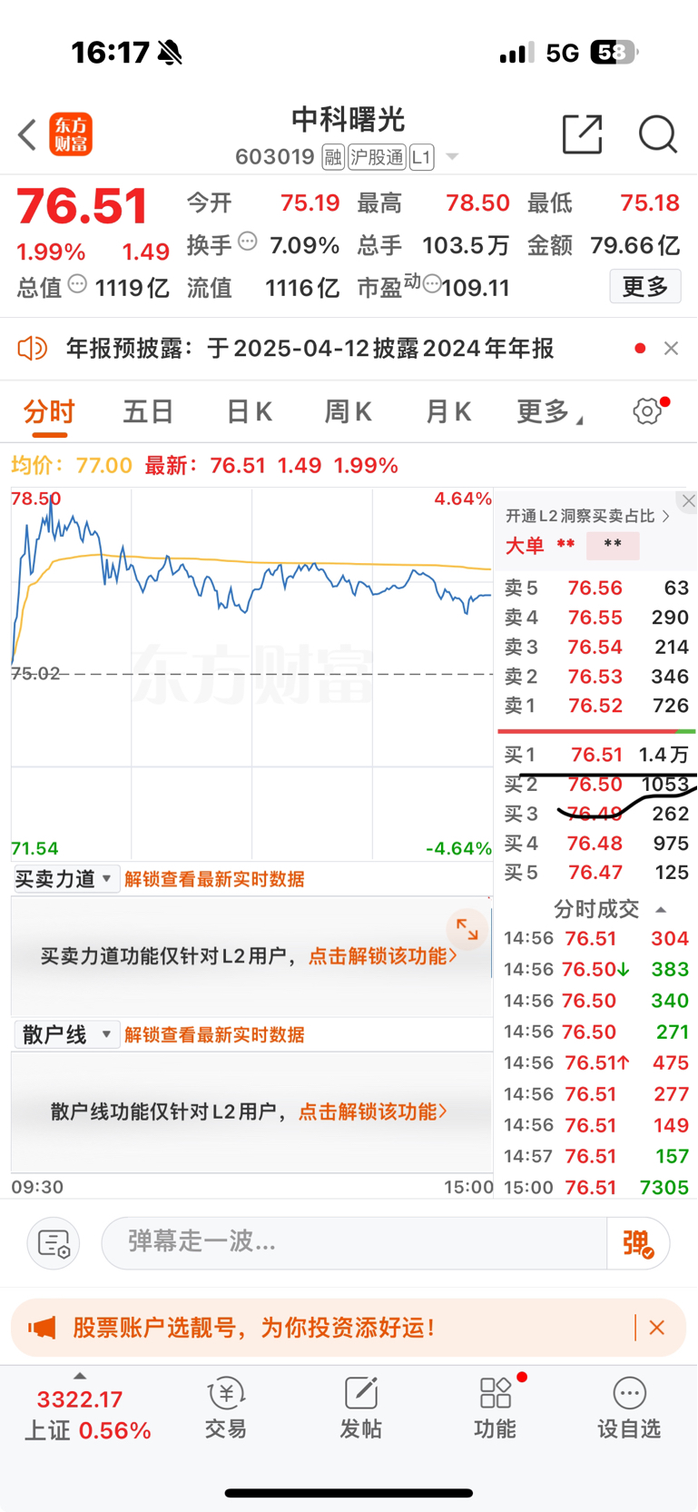 $中科曙光(SH603019)$ 洗了一天,明天高开高走,50万手封单涨停