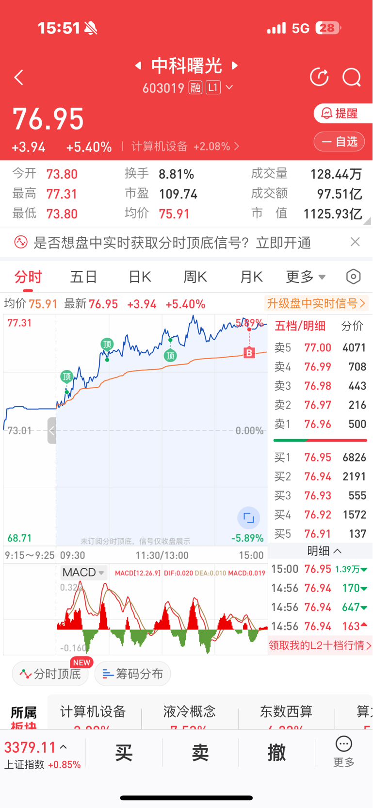 $中科曙光(SH603019)$ 只买不卖,不管利空还是利好,个人看好曙光,消息公布了想买价格更高