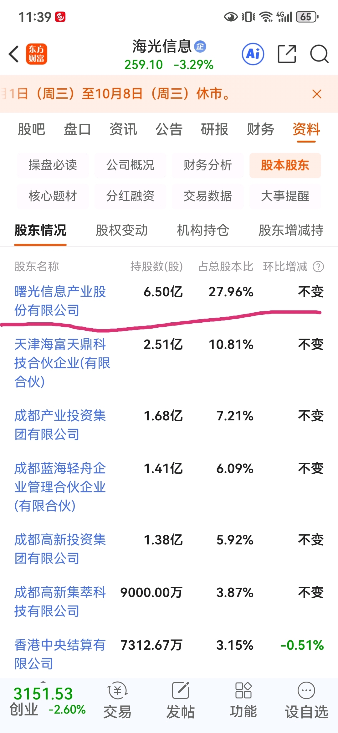 6.5亿股海光信息,6月底至9月底每股升值预估为268-141元,共127×6.