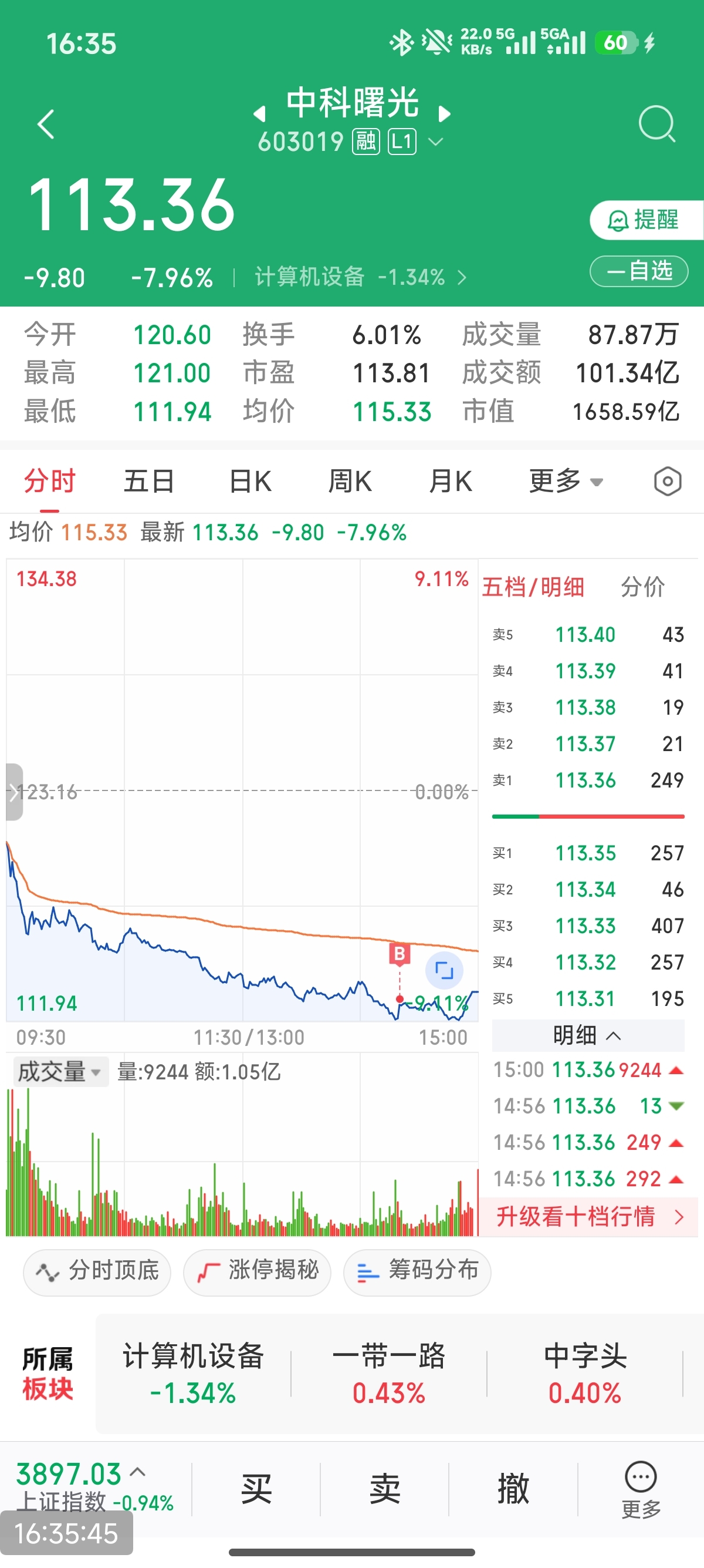 $中科曙光(SH603019)$ 说好跌下来加仓的,你们怎么不是跑的就是不敢加的?