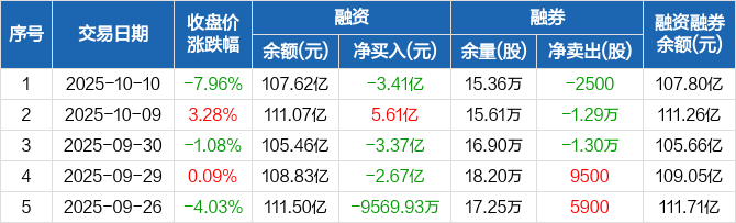 中科曙光融资融券信息显示,2025年10月10日融资净偿还3.41亿元;融资余额107.62亿元,较前一日下降3.1%。