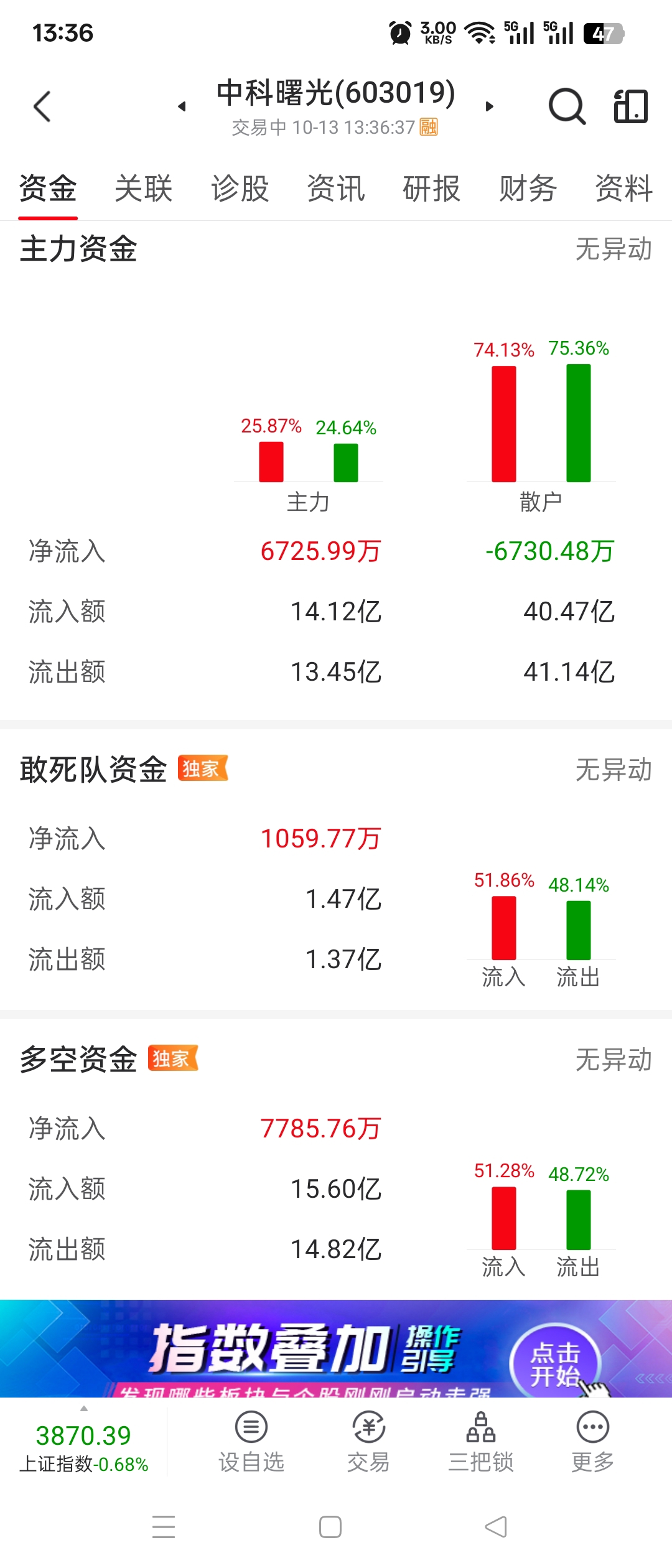 $中科曙光(SH603019)$ 全是散户主力都没进,全是机构做空,自己在那玩