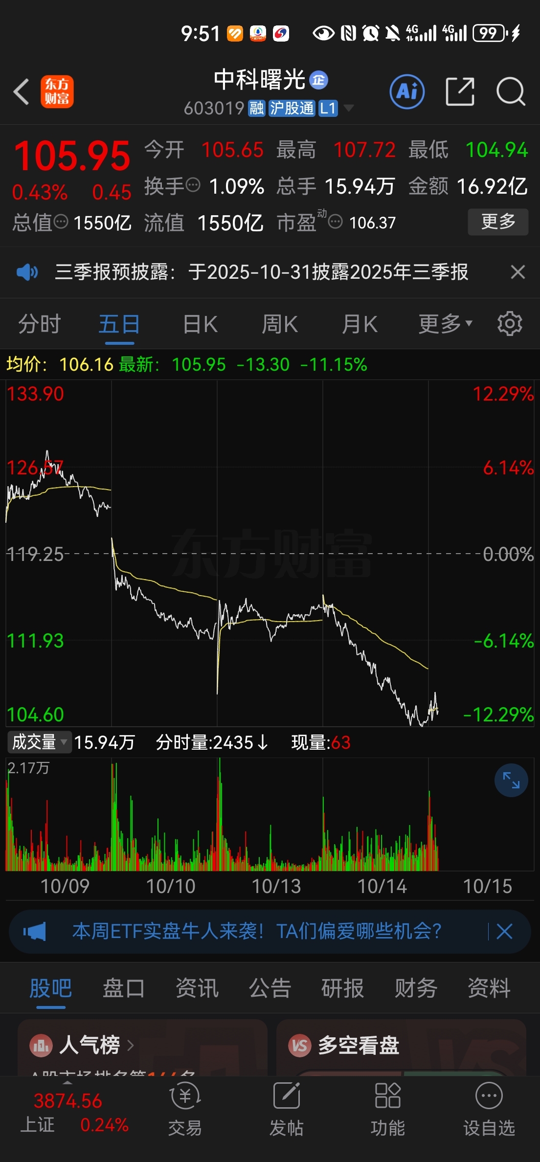 $中科曙光(SH603019)$ 反弹到109附近减仓