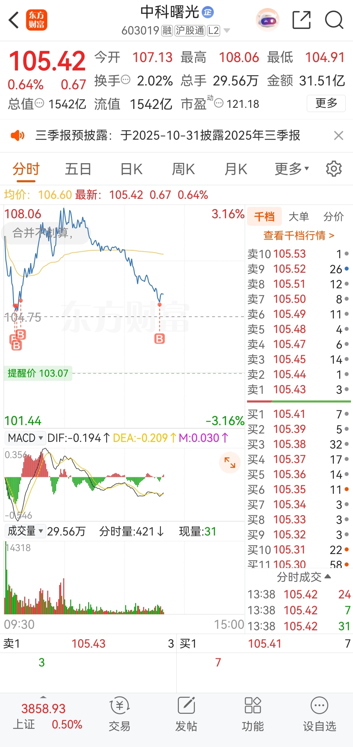 $中科曙光(SH603019)$ 哥不要拉上去哈!我这两天大资金才到账,给点机会现在小搞点