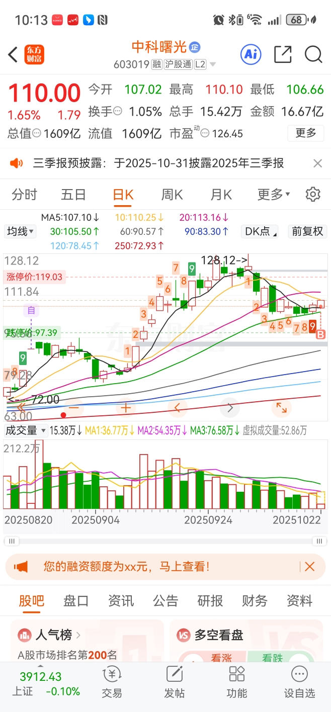 $中科曙光(SH603019)$ 这么强?是因为我开仓了吗?感谢主力