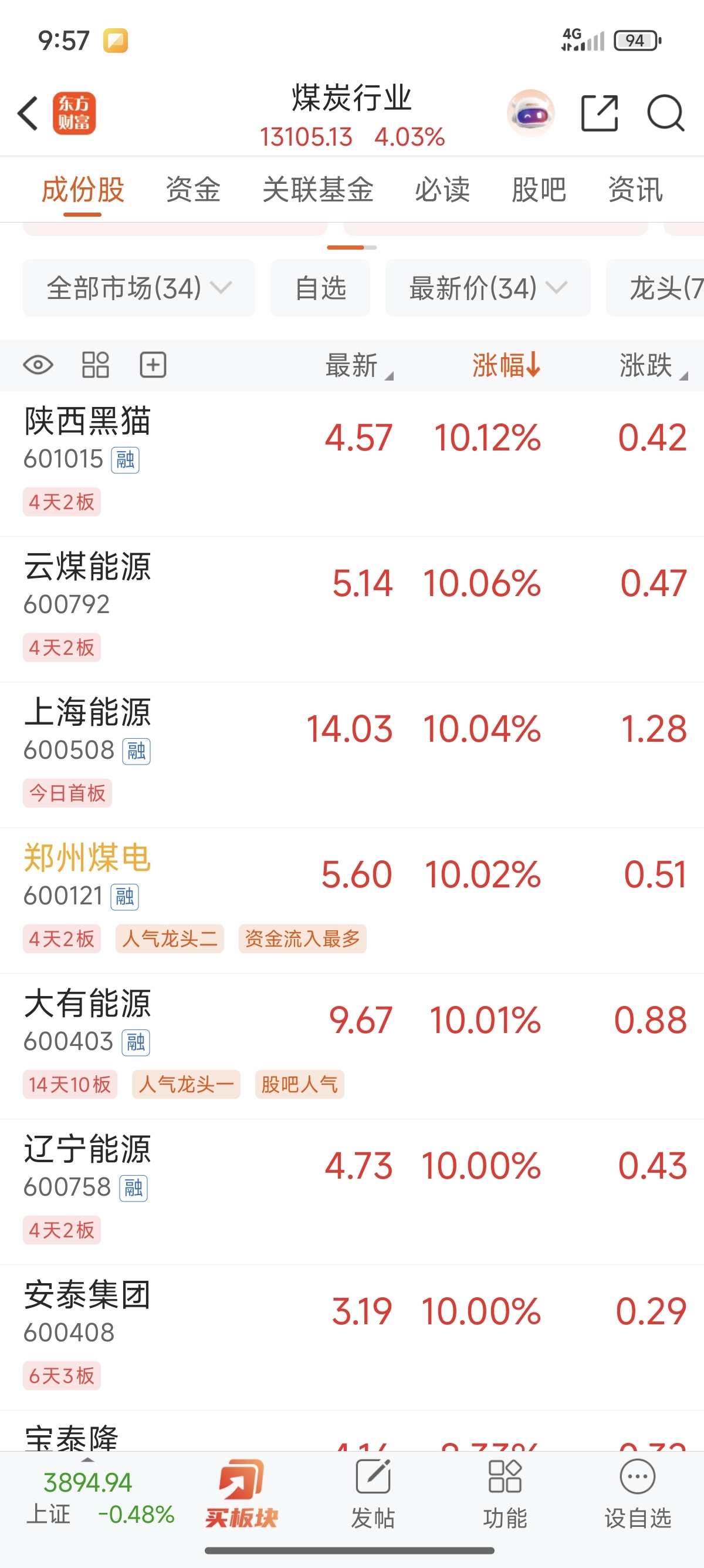 $中科曙光(SH603019)$ 看看煤炭 早知道这个月不破四千我就不来科技股了