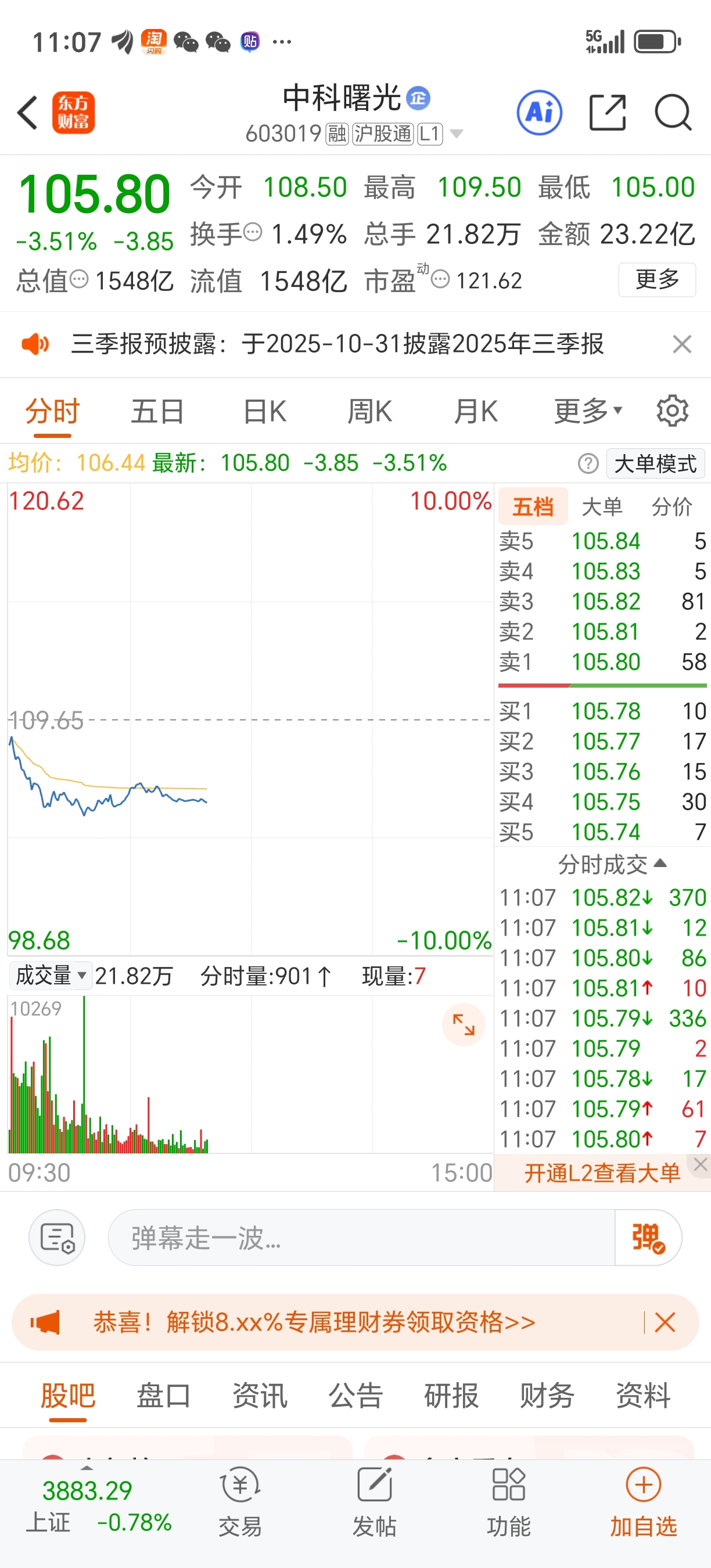 挂105.50全仓进,不买待会拉上去了就买不到了,再次提示...