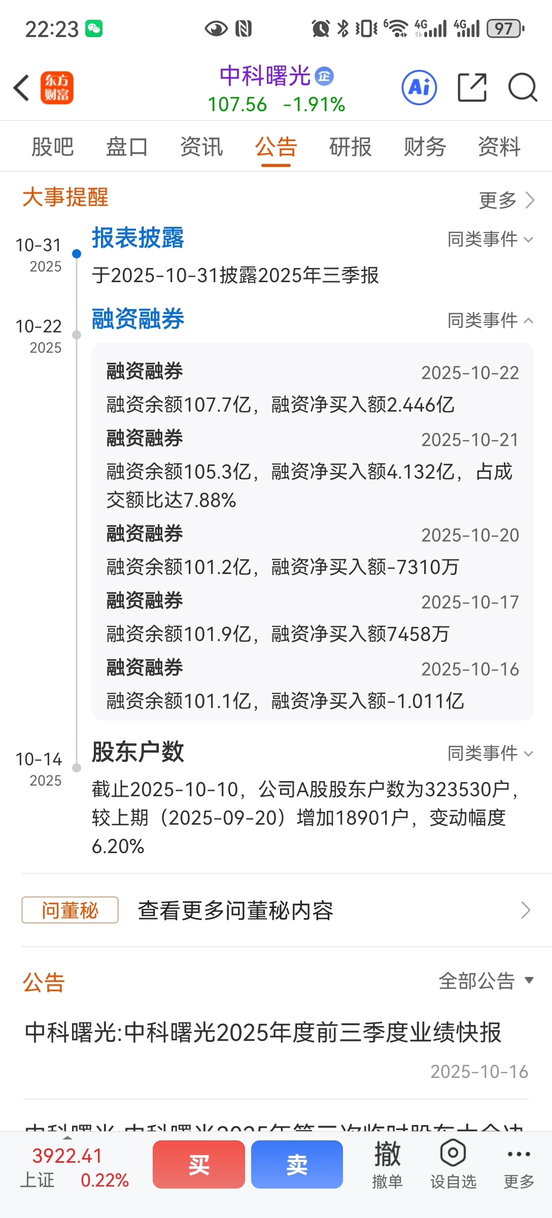 融资两天加了6亿多涨了4个点今天肯定跑了一部分这一利好出来又有机会出逃了历史高位