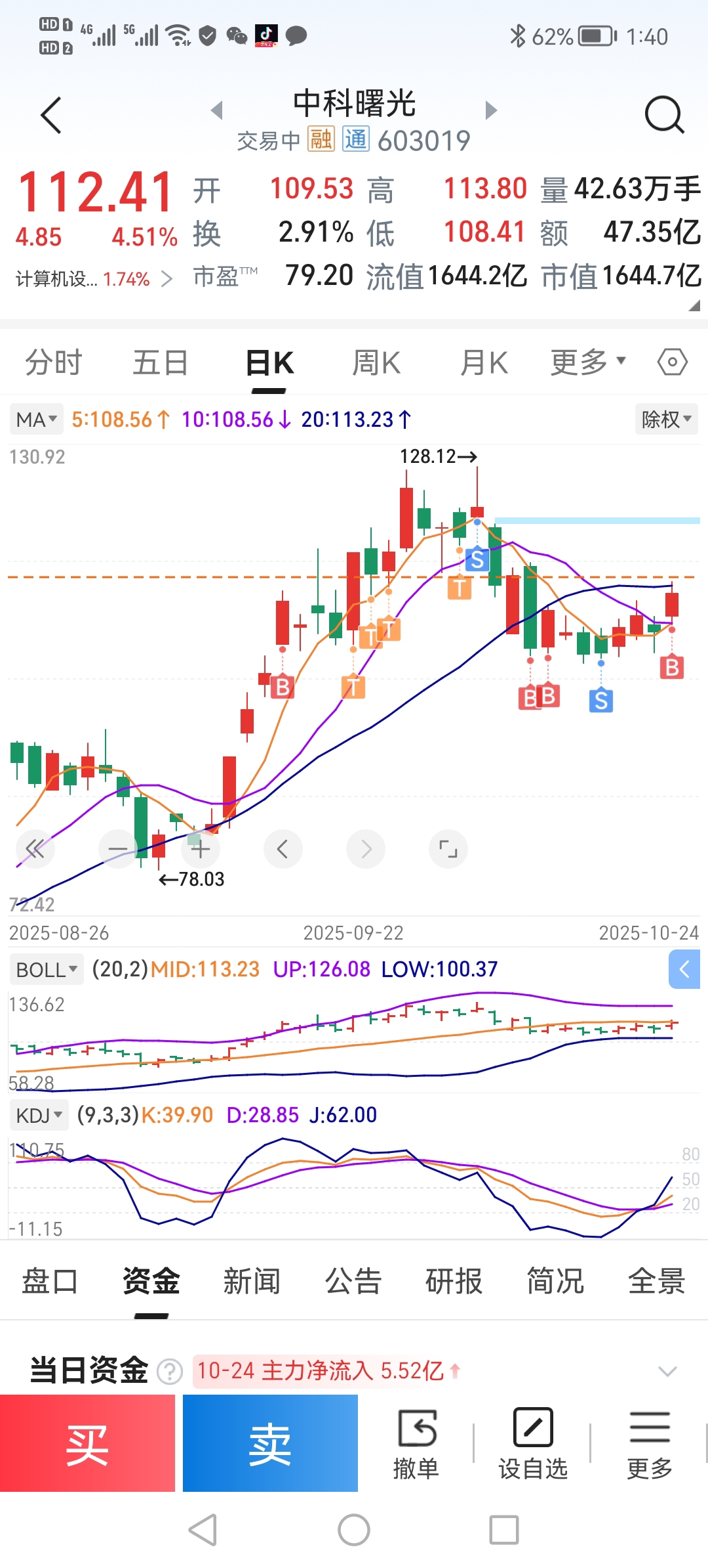 $中科曙光(SH603019)$ 日线金叉,要来一波上涨行情