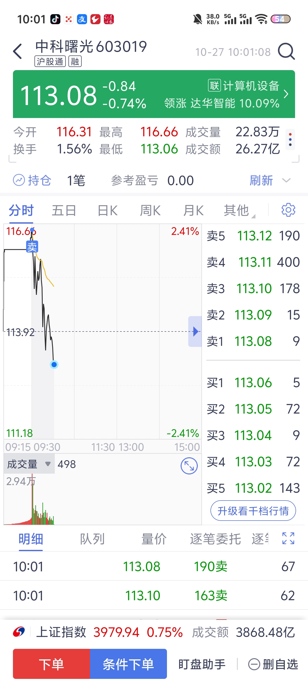 $中科曙光(SH603019)$ 幸好开盘就卖了