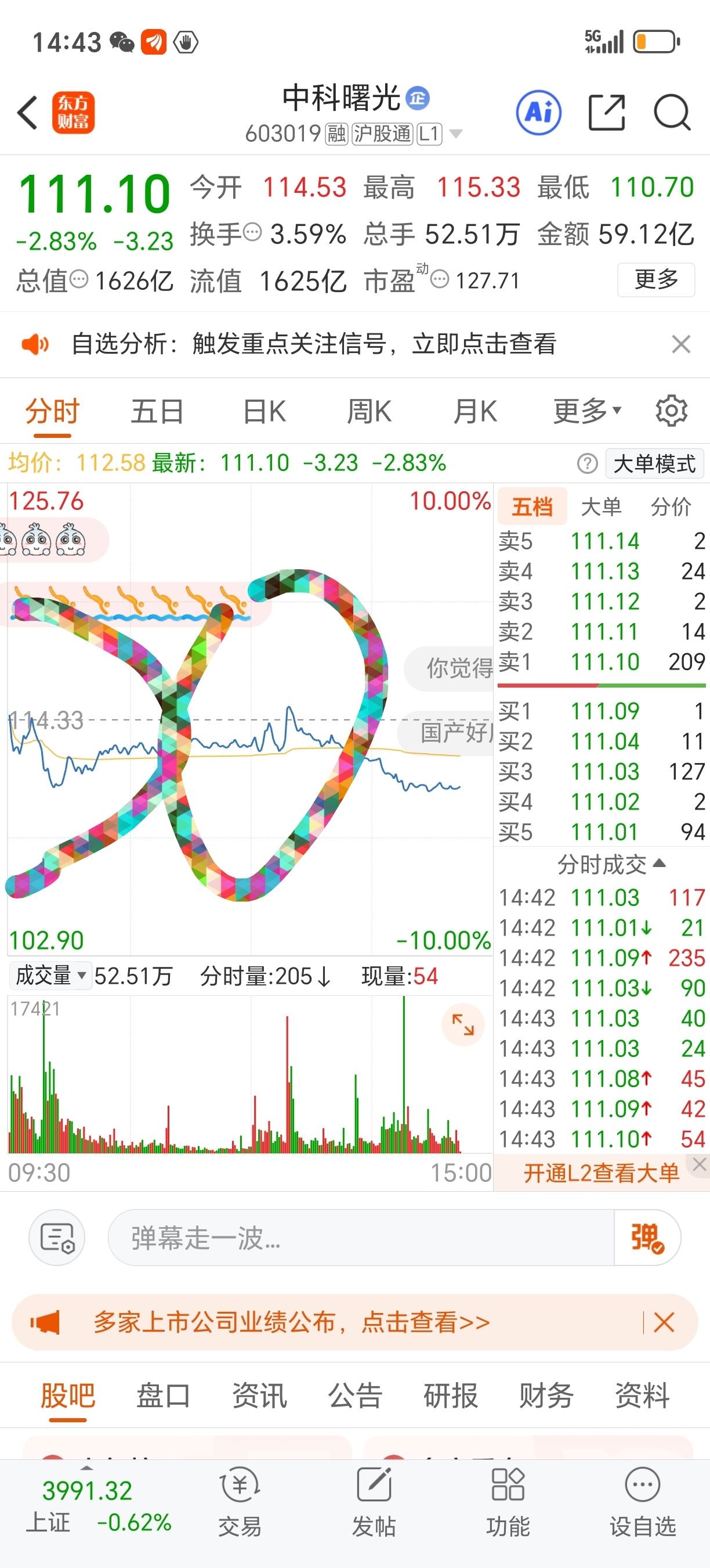我再说一遍明天中科曙光百分之百要涨停这么明显的洗盘分时都看不懂还玩什么股票,我算
