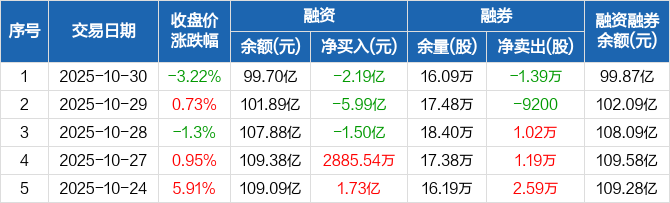中科曙光:融资净偿还2.19亿元,两市排名第15(10-30)