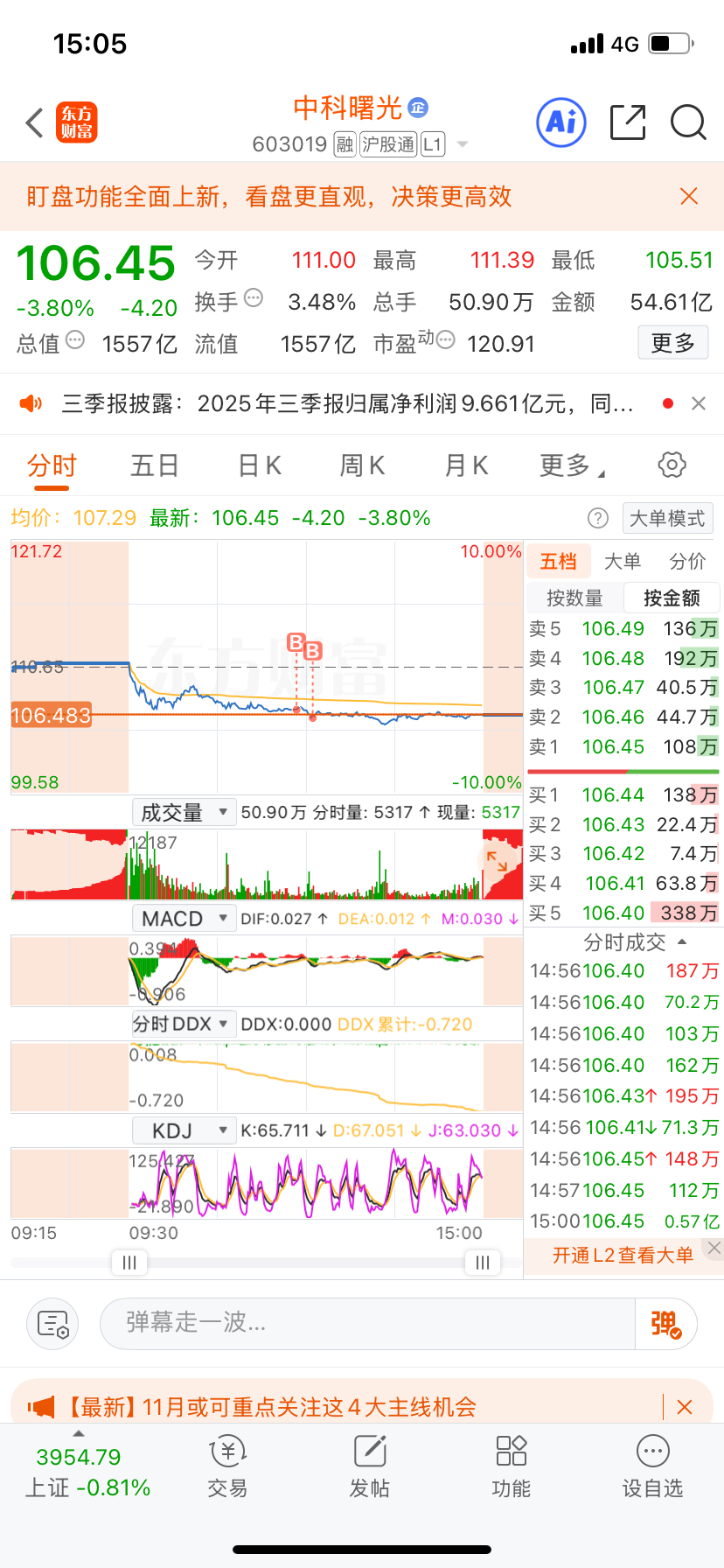 $中科曙光(SH603019)$ 是对是错,满仓了,70W