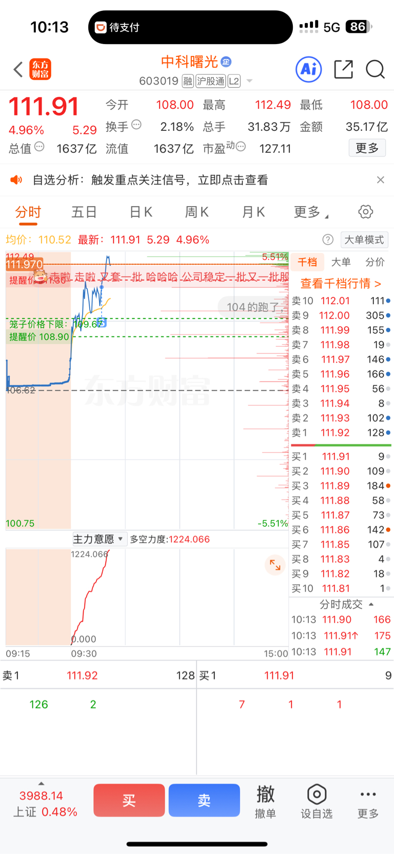 $中科曙光(SH603019)$ 卖一手你才会涨