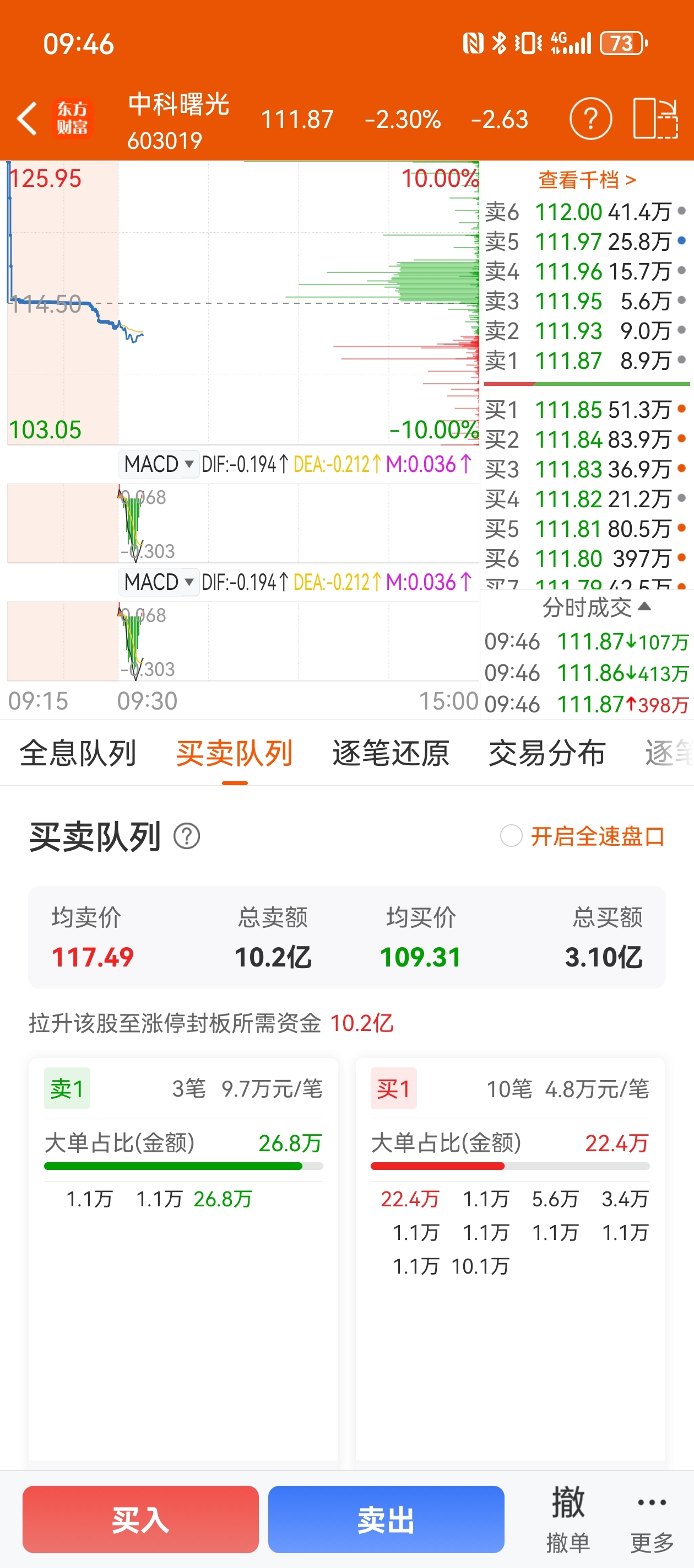 $中科曙光(SH603019)$ 10亿的卖单,你们就别想了