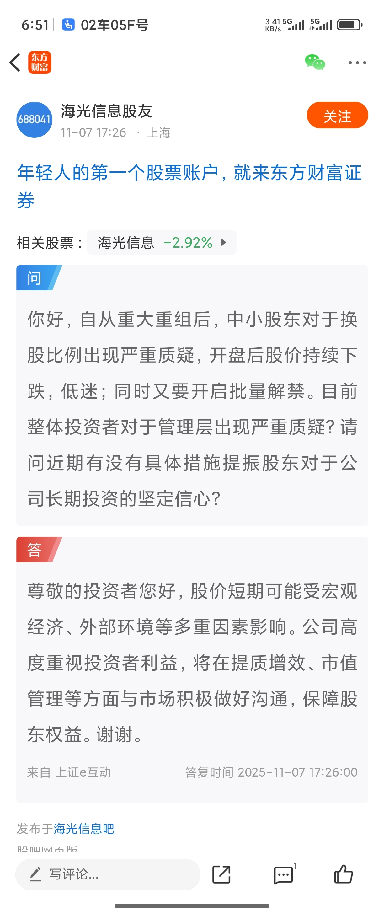 温馨提示: 1.根据《证券法》规定,禁止编造、传播虚假信息或者误导性信息,扰乱证券市场;2.用户在本社区发表的所有资料、言论等仅代表个人观点,与本网站立场无关,不对您构成任何投资建议。用户应基于自己的独立判断,自行决定证券投资并承担相应风险。《东方财富社区管理规定》