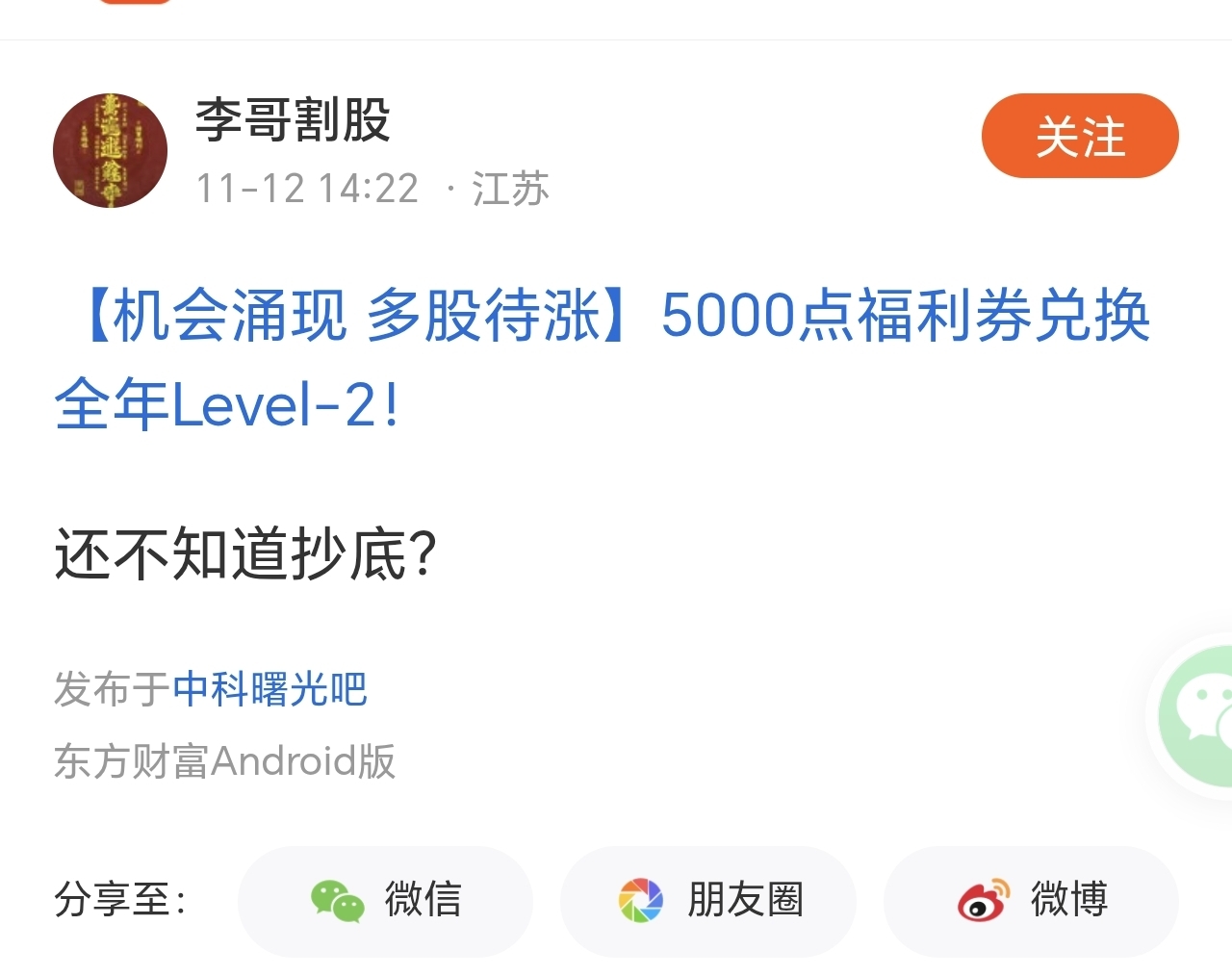 温馨提示: 1.根据《证券法》规定,禁止编造、传播虚假信息或者误导性信息,扰乱证券市场;2.用户在本社区发表的所有资料、言论等仅代表个人观点,与本网站立场无关,不对您构成任何投资建议。用户应基于自己的独立判断,自行决定证券投资并承担相应风险。《东方财富社区管理规定》