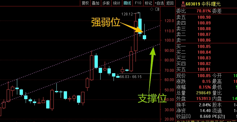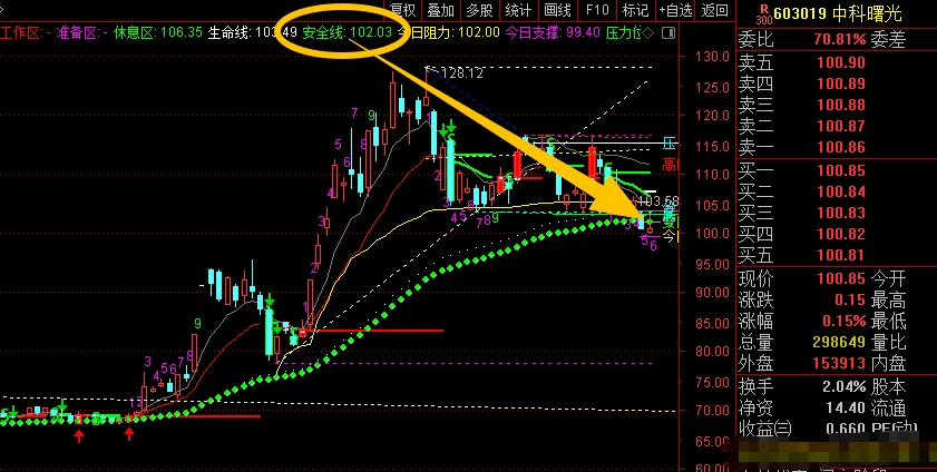 $中科曙光(SH603019)$ 周线主要看一个通道,能站稳上沿才能稳住,不然就还是折腾,同时下沿位置做防守应对。日线上主要是看安全线102.03位置的得失,能稳住问题不大,但有效跌破就要控制仓位应对,不用纠结。