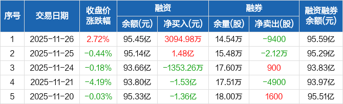 中科曙光:融资净买入3094.98万元,融资余额95.45亿元(11-26)