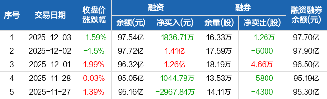 中科曙光:融资净偿还1836.71万元,融资余额97.54亿元(12-03)