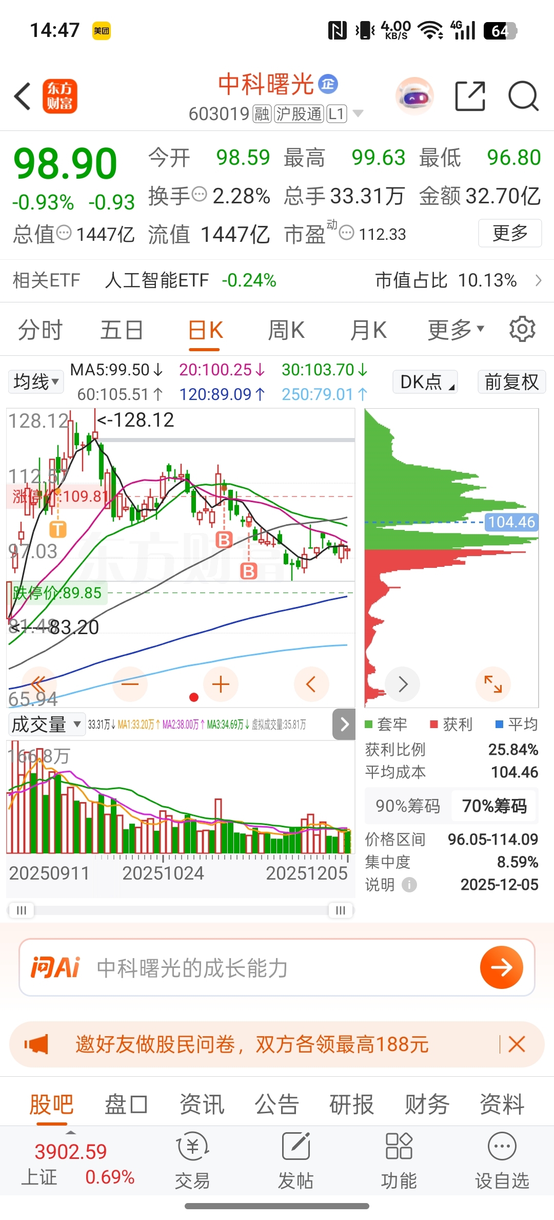 $中科曙光(SH603019)$ 也是怪我,自从我买了两手他就没再上去过