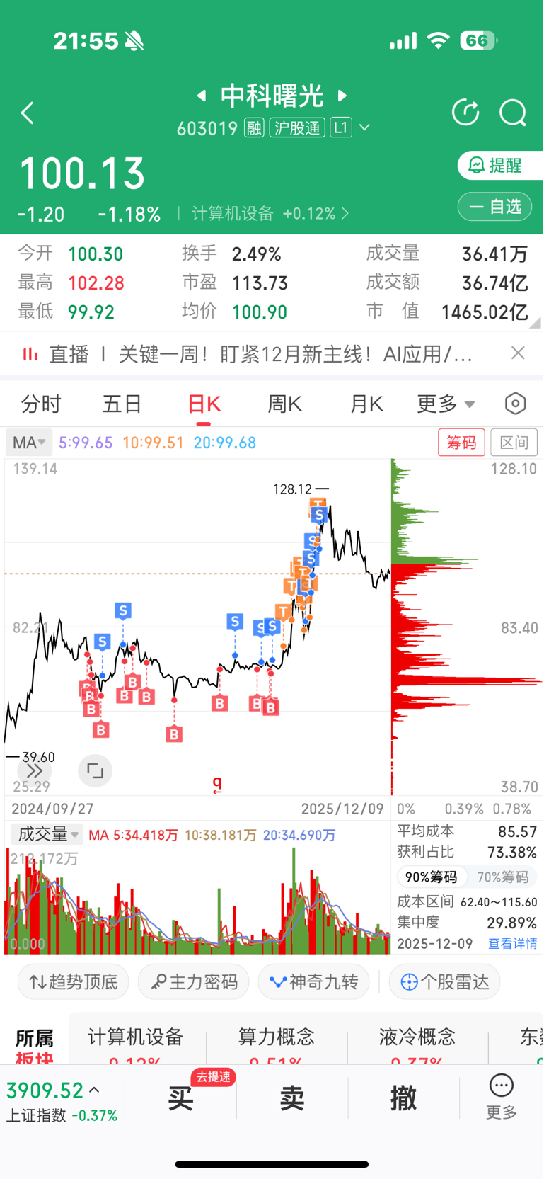 $中科曙光(SH603019)$ 118一键清仓懊恼了几天,但是之后几天总感觉不对劲,一直没入手,想想现在看来,几千亿的公司也玩过家家
