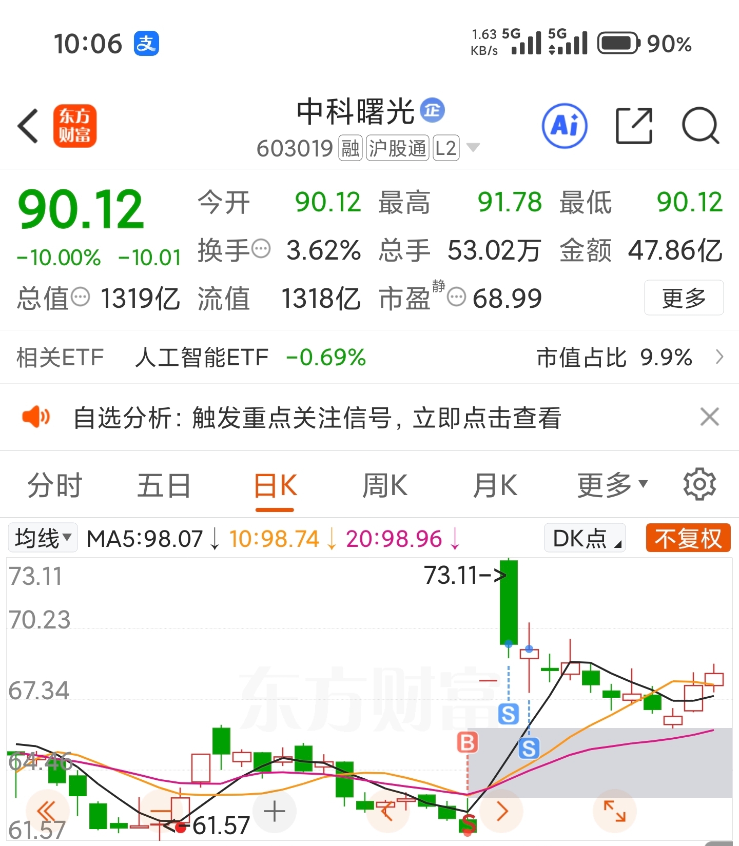 $中科曙光(SH603019)$ 当初说重组的涨停我吃到了,跌停被你们吃到了