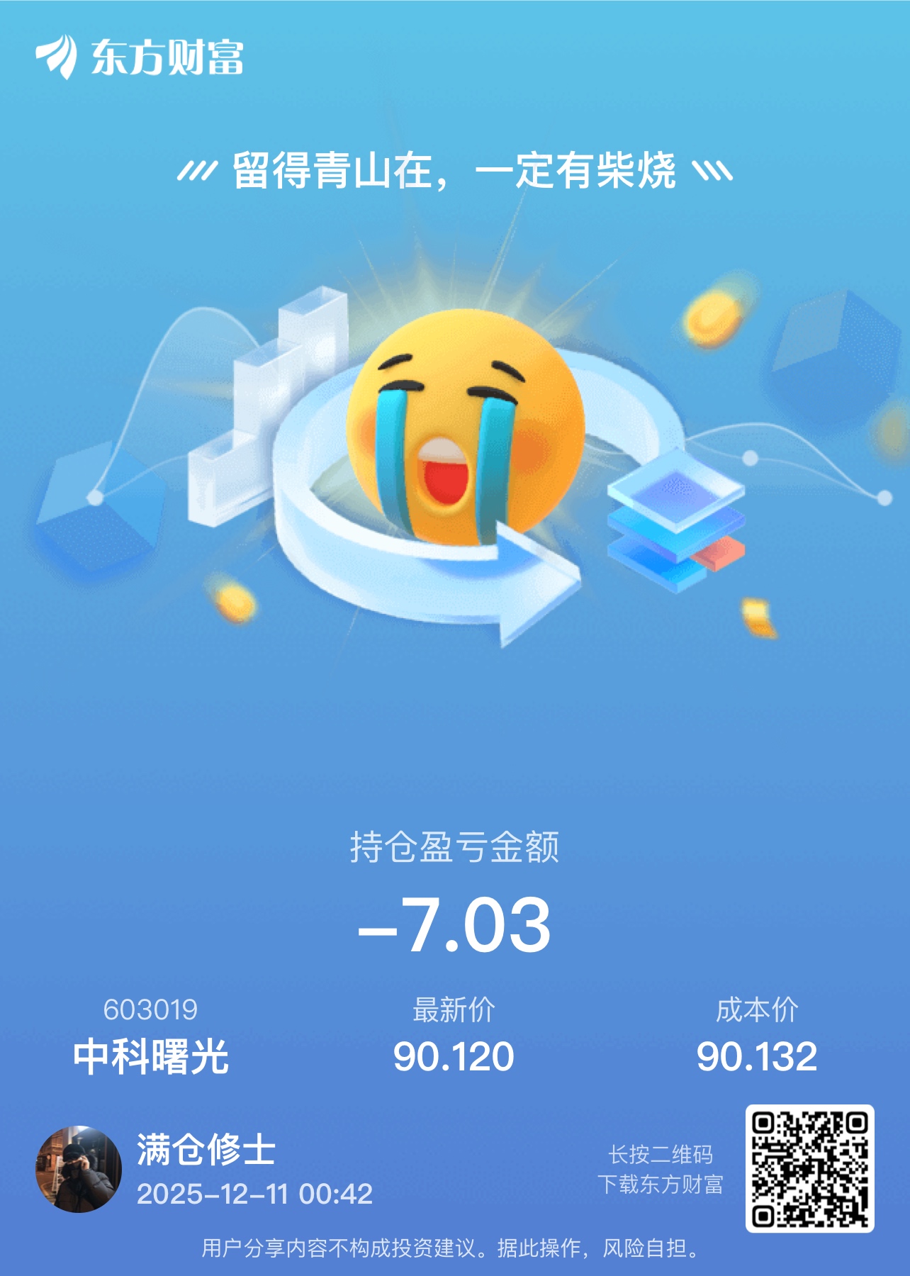 温馨提示: 1.根据《证券法》规定,禁止编造、传播虚假信息或者误导性信息,扰乱证券市场;2.用户在本社区发表的所有资料、言论等仅代表个人观点,与本网站立场无关,不对您构成任何投资建议。用户应基于自己的独立判断,自行决定证券投资并承担相应风险。《东方财富社区管理规定》